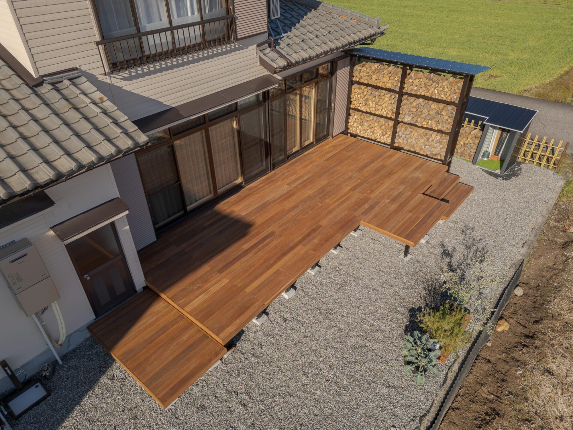ロケーション抜群!薪棚のあるウリンデッキ