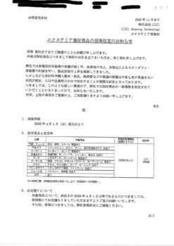 メーカー値上げの連絡です。