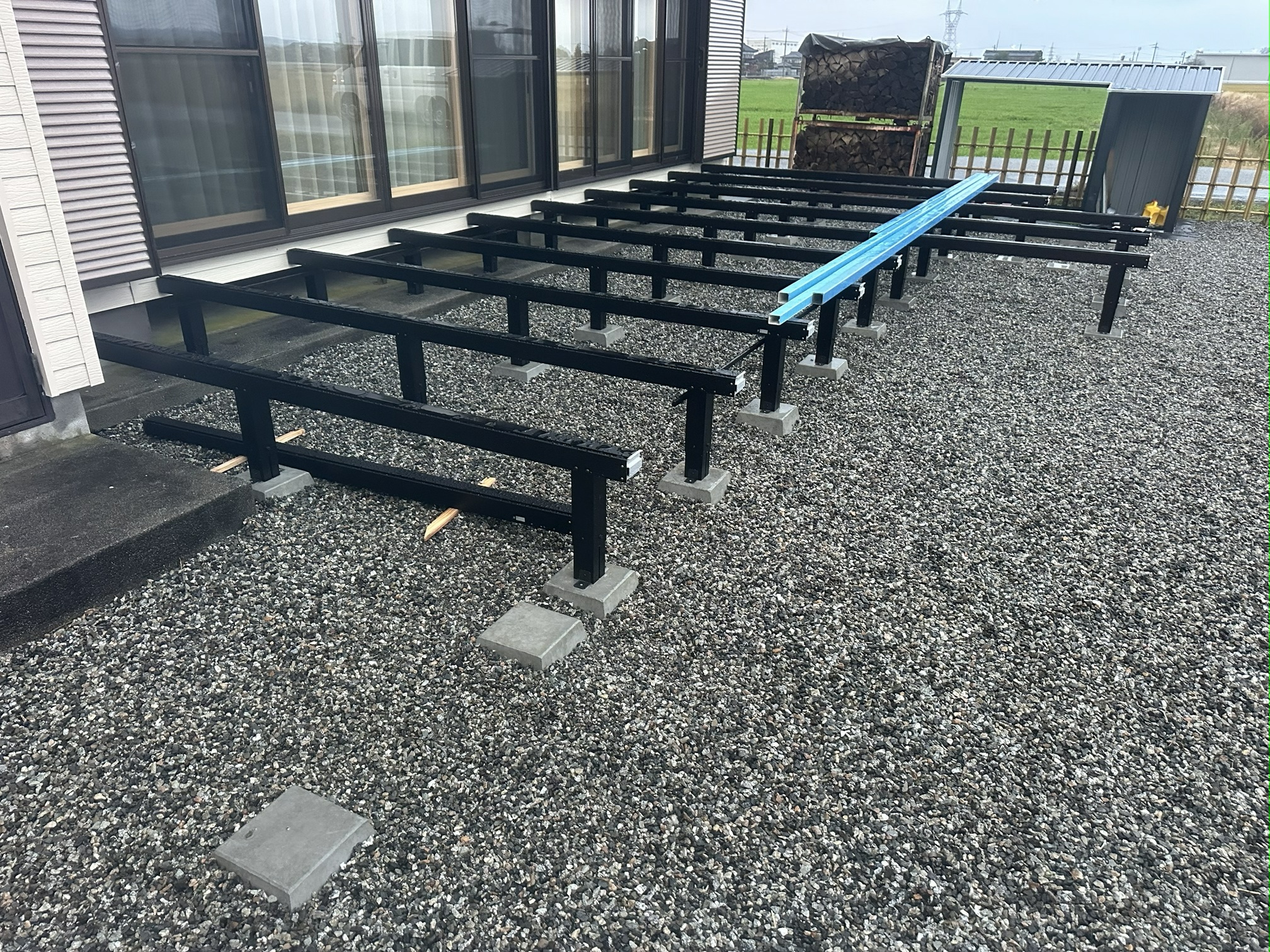 現場確認でうかがったところ、ちょうど大引きをほぼ敷き終わったようなところです。
