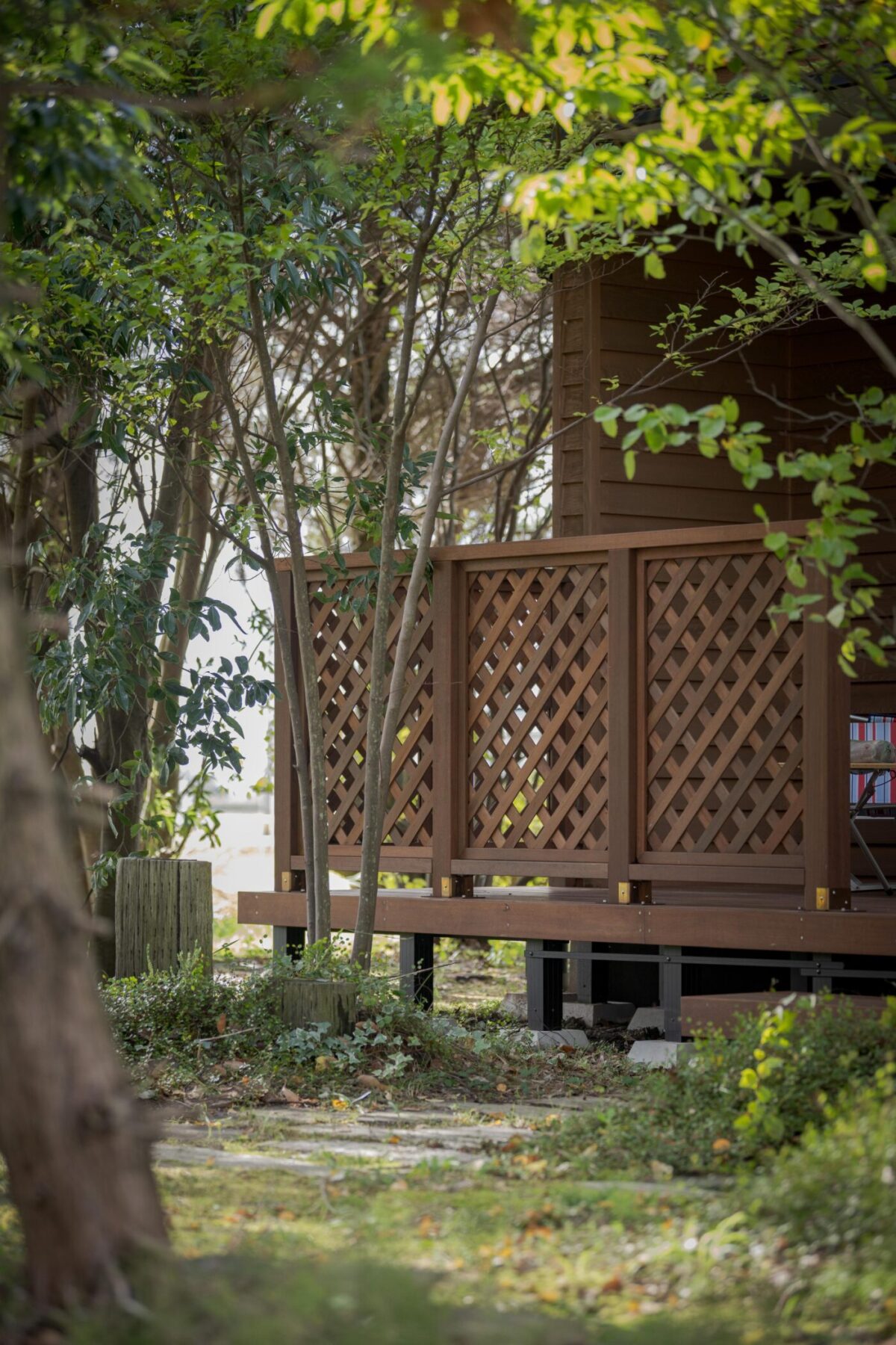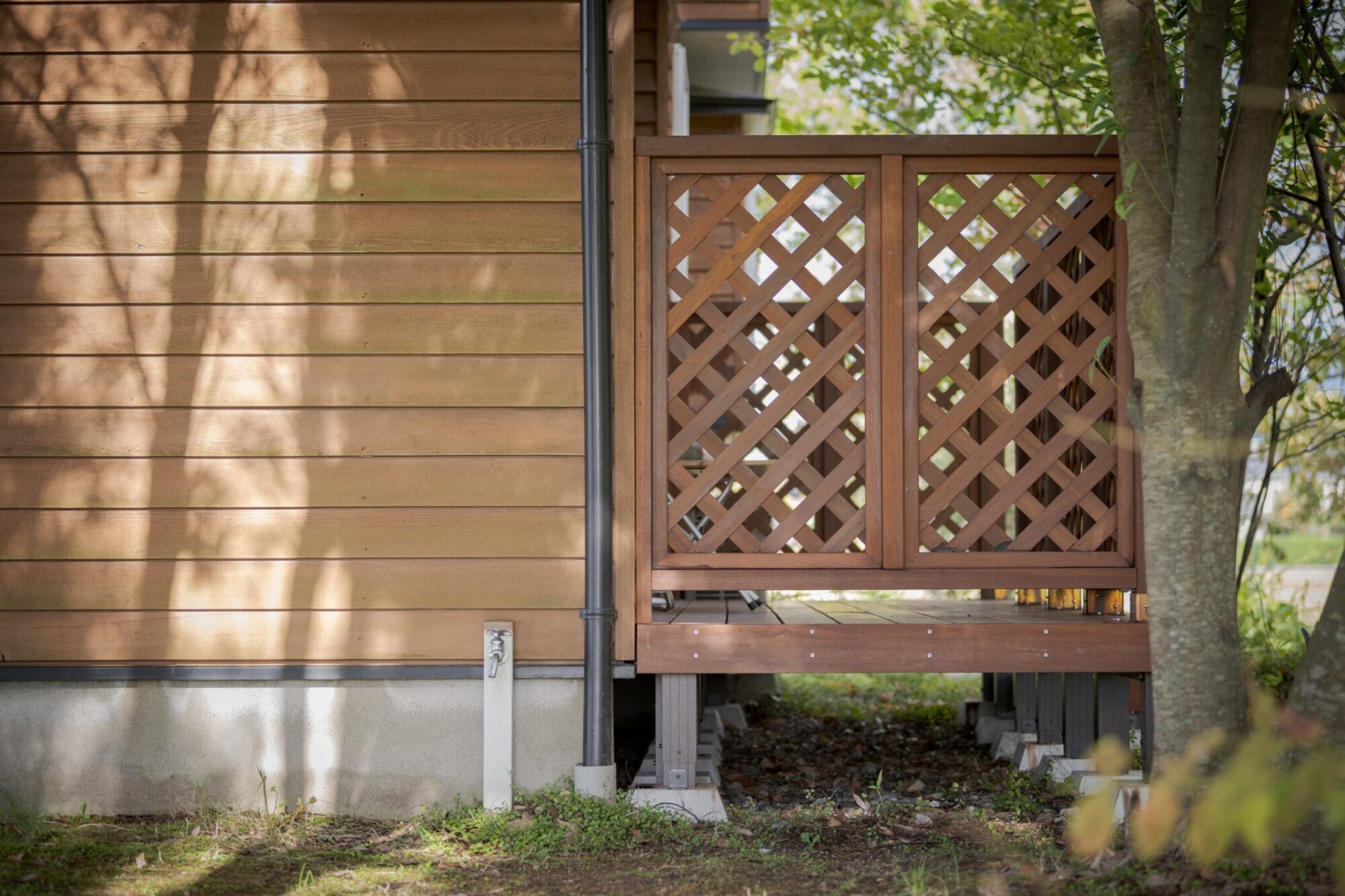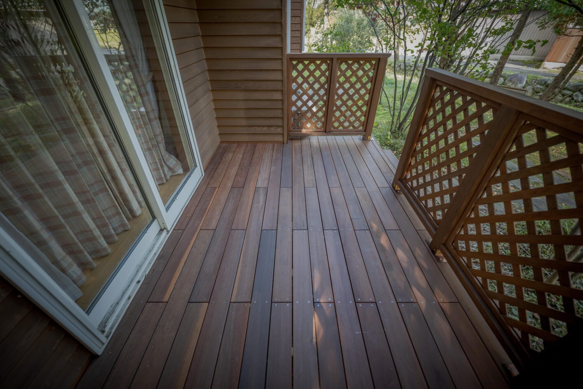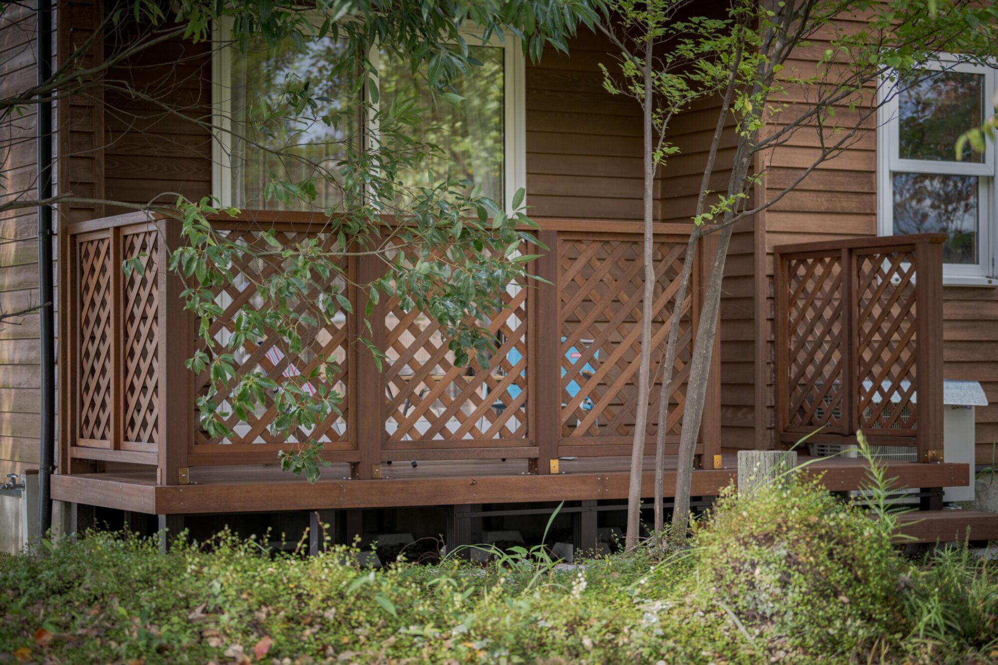 デッキと同じくウリン製フェンスになり、ご自宅の木の雰囲気や周りの自然と非常によくマッチしています。