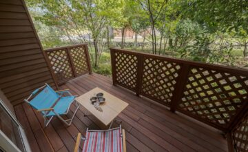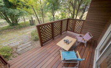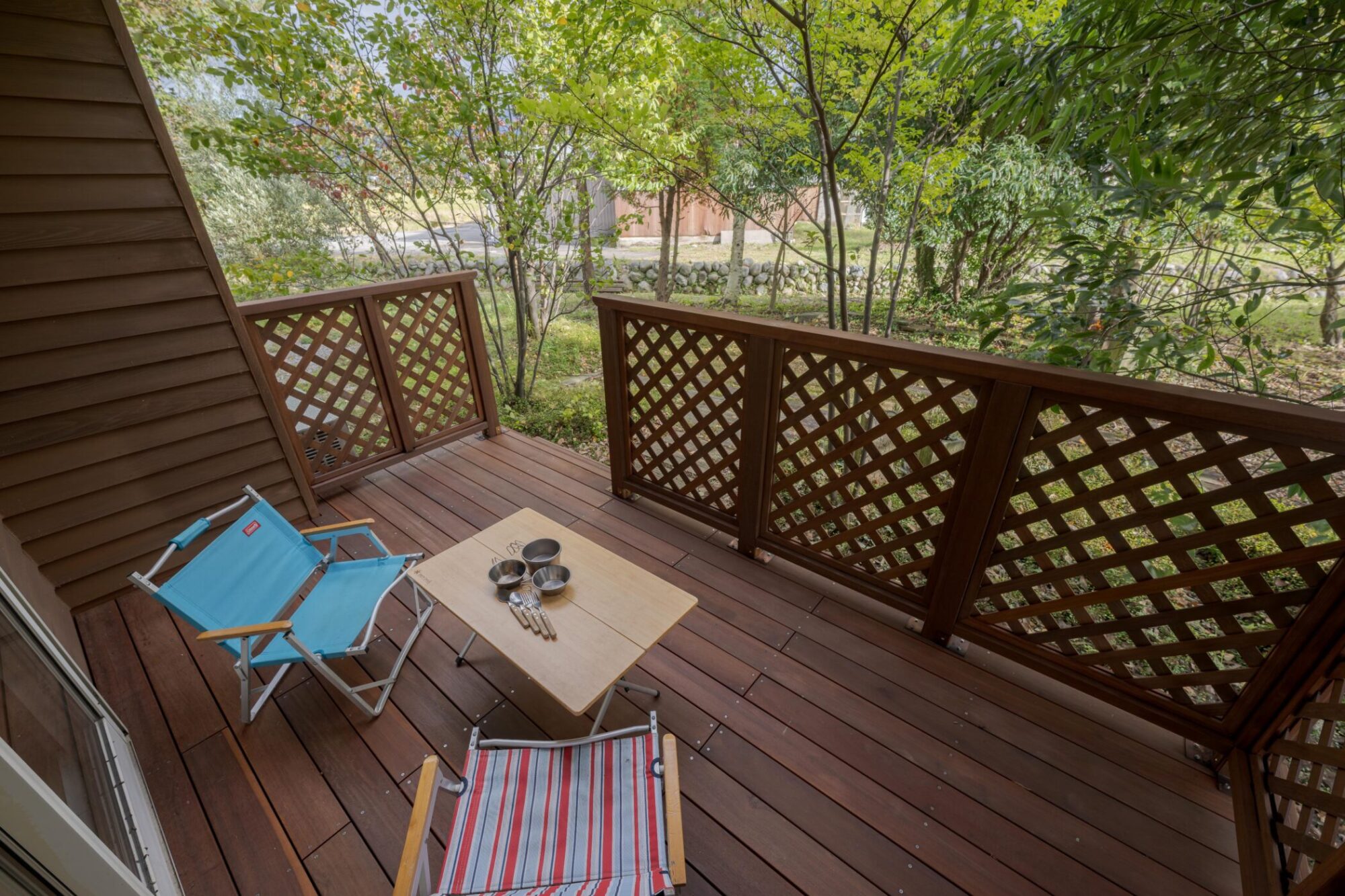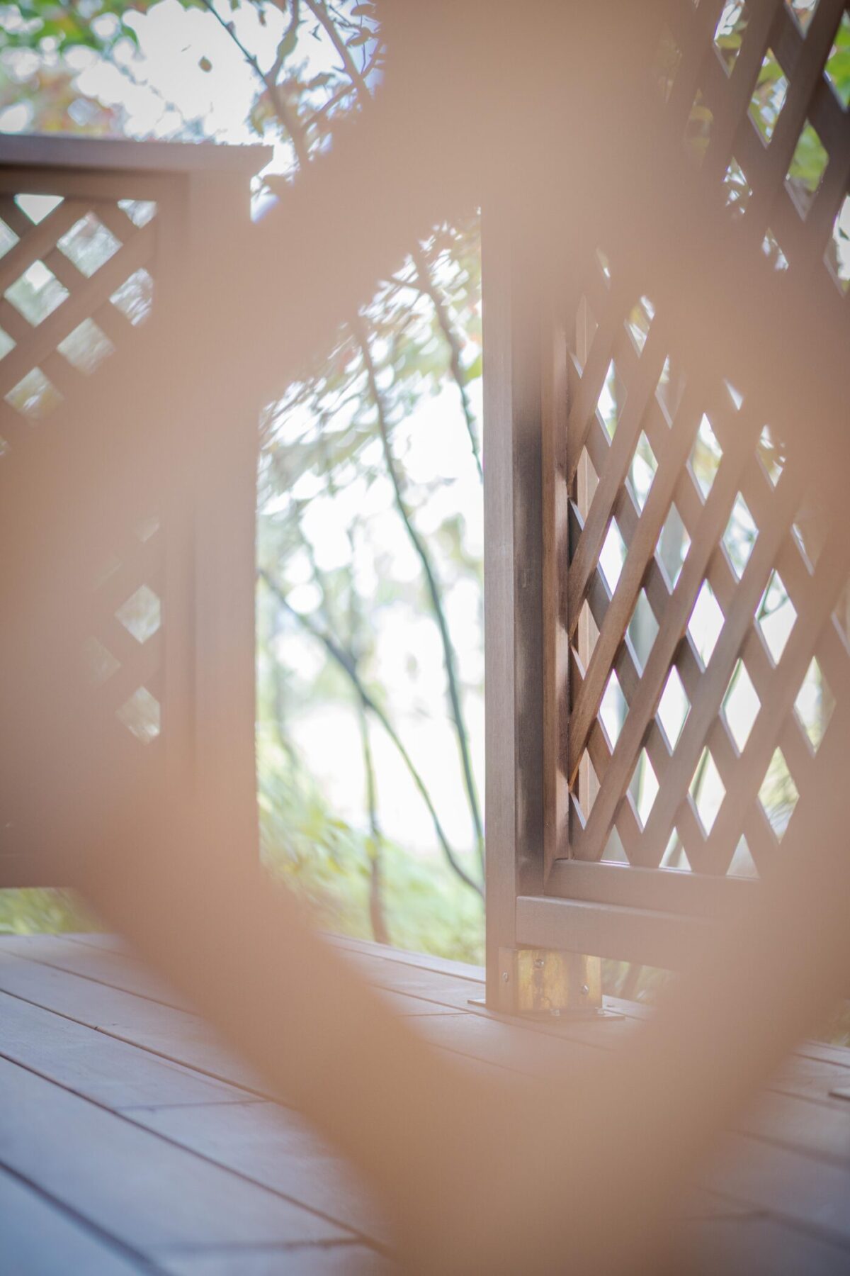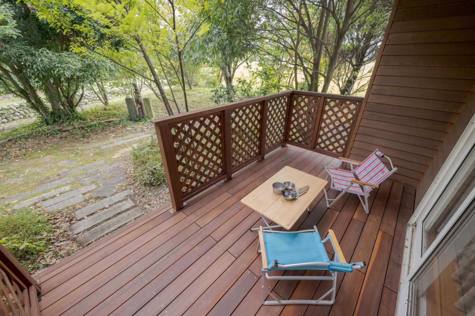 デッキと同じくウリン製フェンスになり、ご自宅の木の雰囲気や周りの自然と非常によくマッチしています。