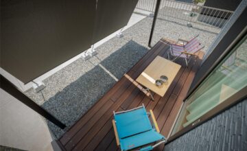 ”あえて”テラス屋根よりも少し小さめにデッキを設計することで、