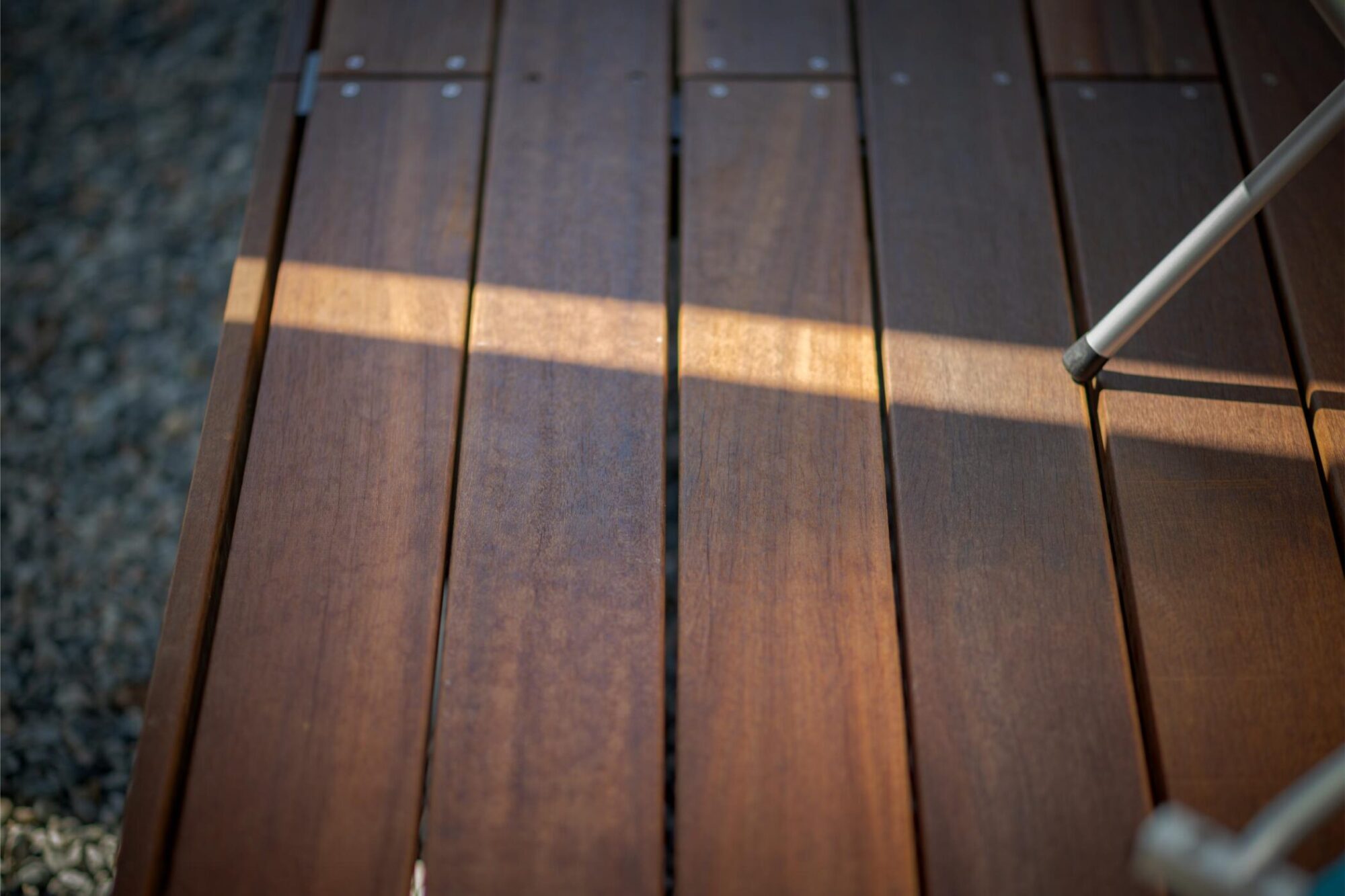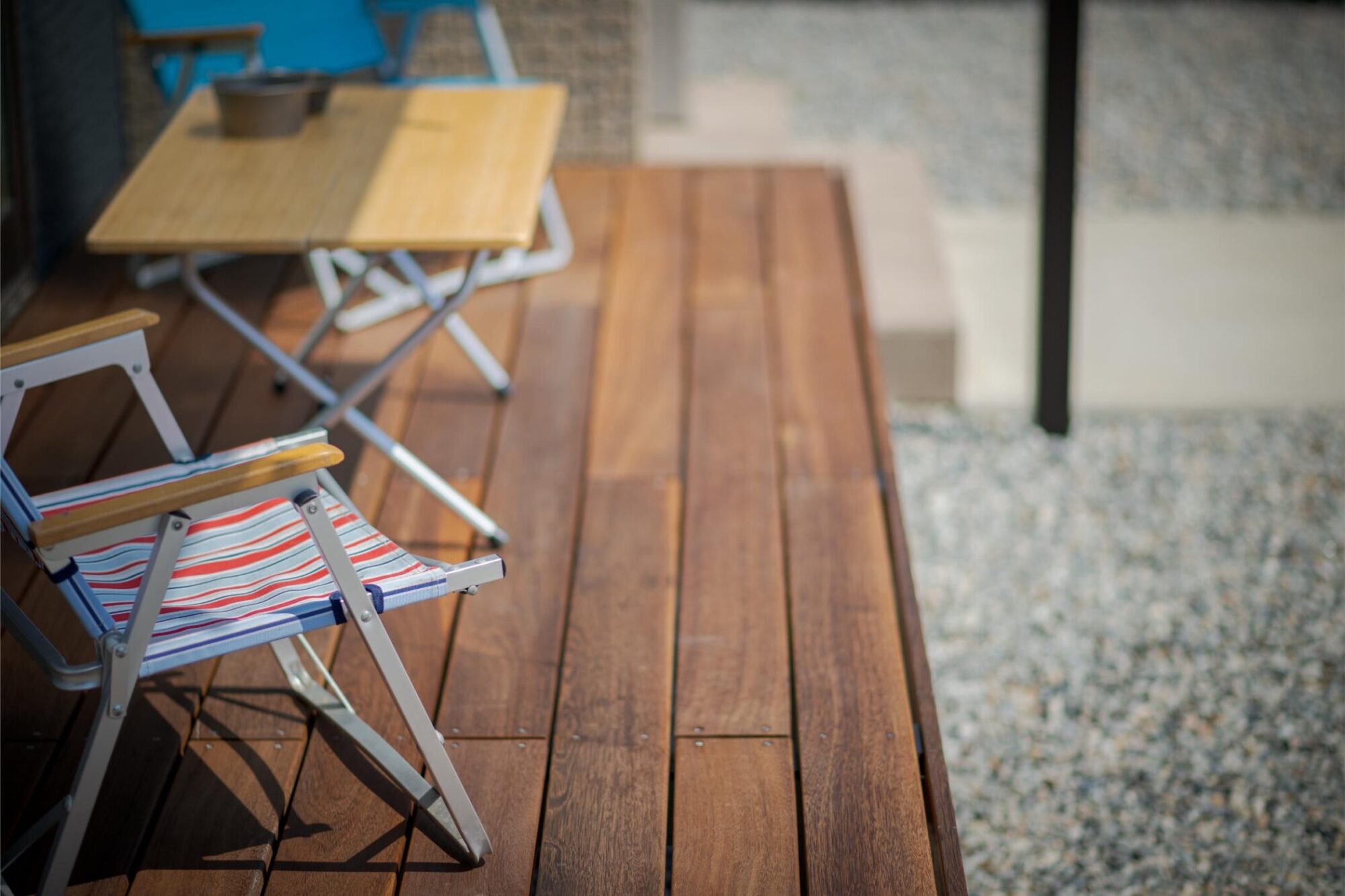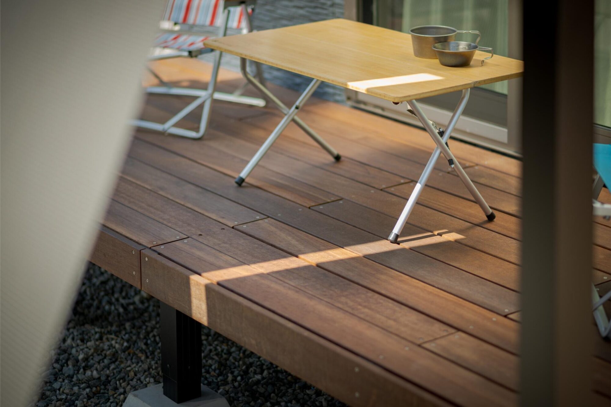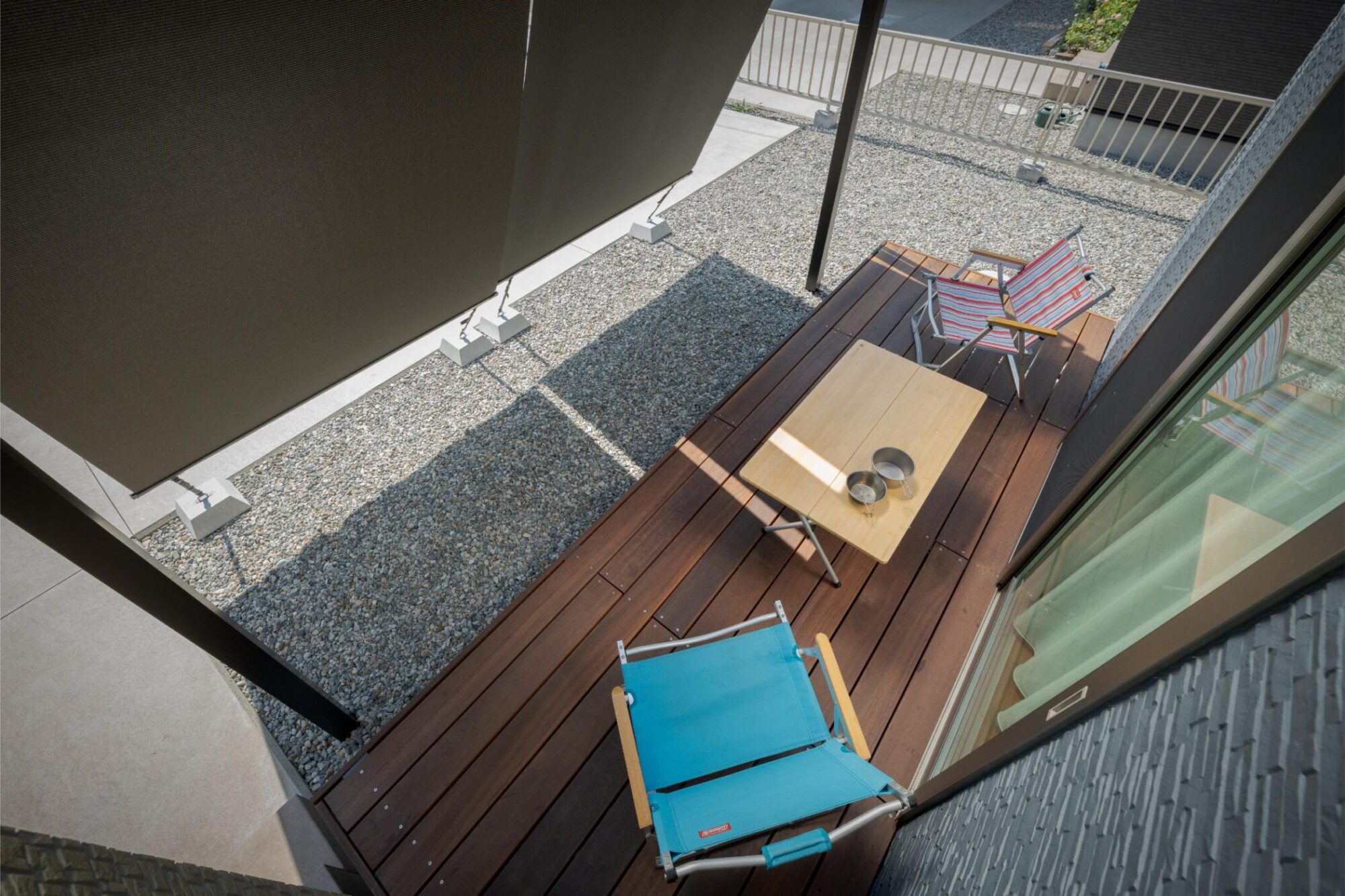 ”あえて”テラス屋根よりも少し小さめにデッキを設計することで、