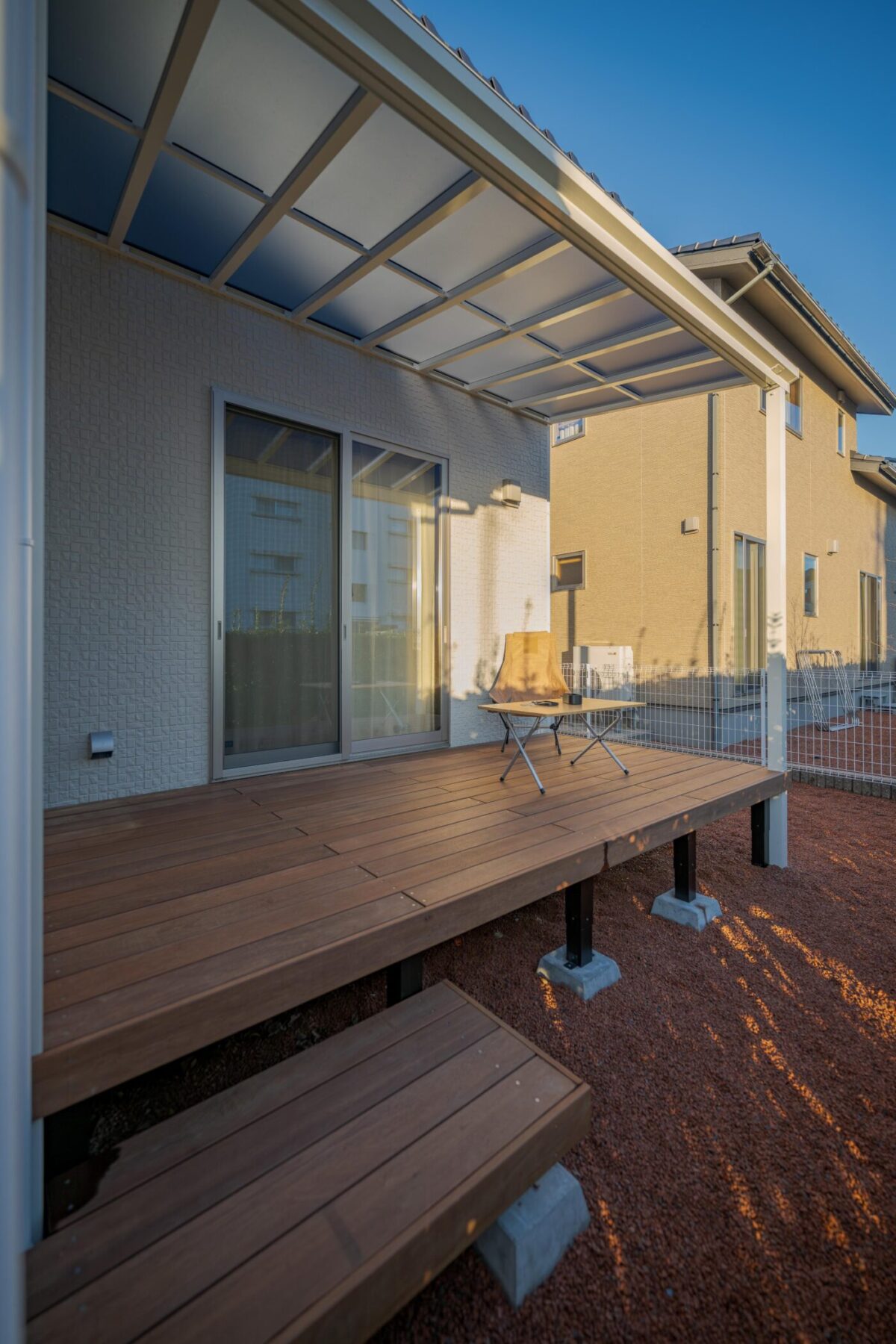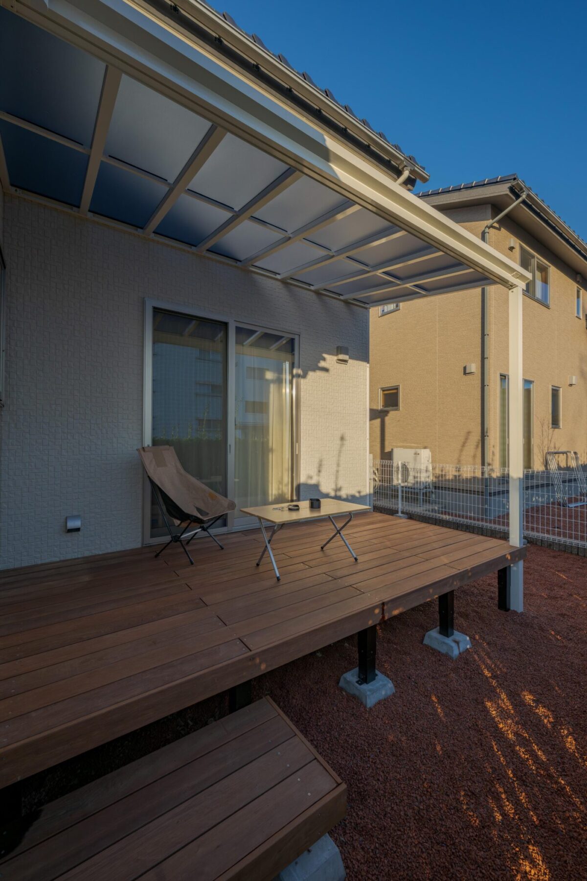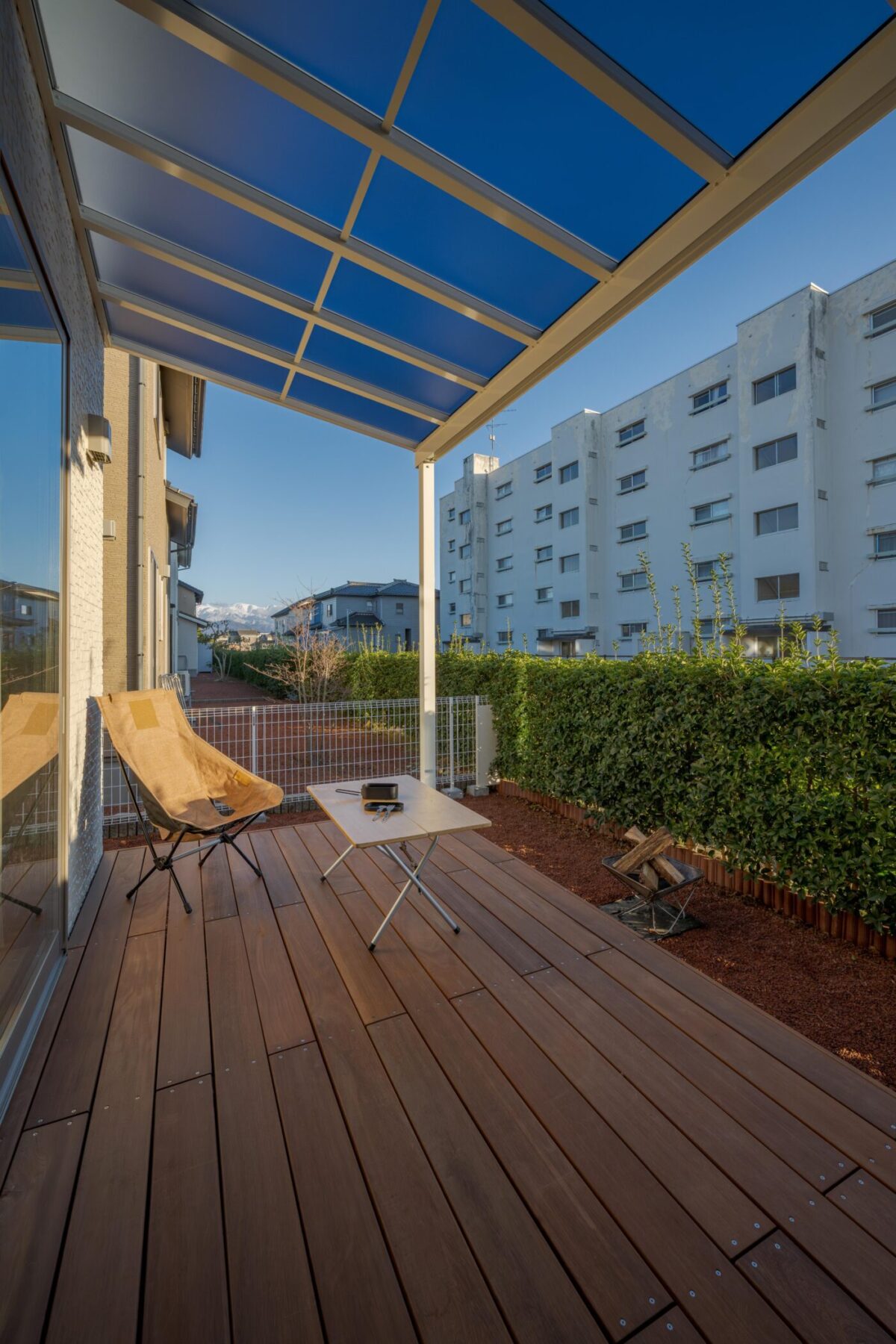 デッキだけでなく、リビングにもほどよい日陰を作ることで夏の快適さが段違いに変わります。