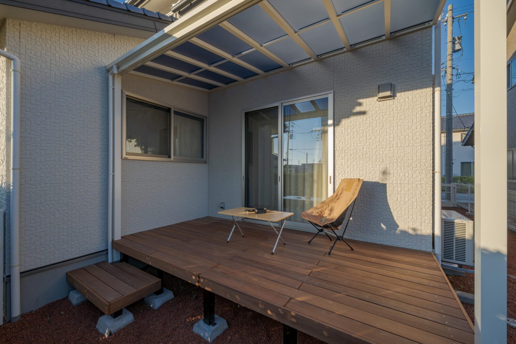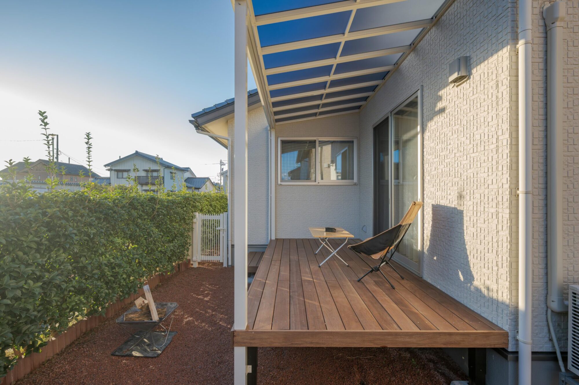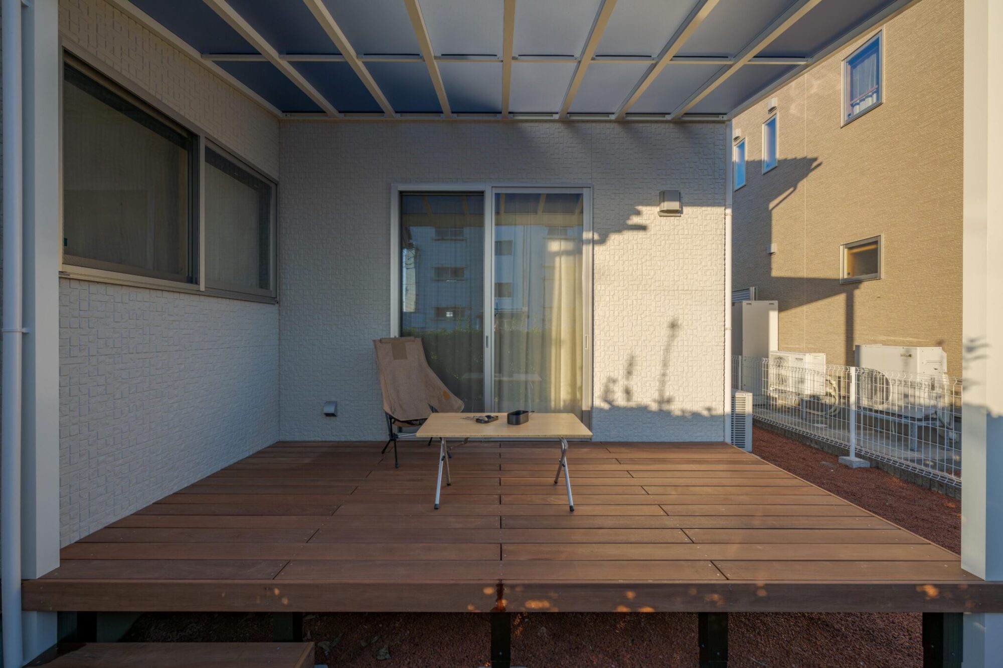 デッキだけでなく、リビングにもほどよい日陰を作ることで夏の快適さが段違いに変わります。