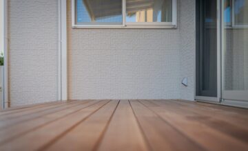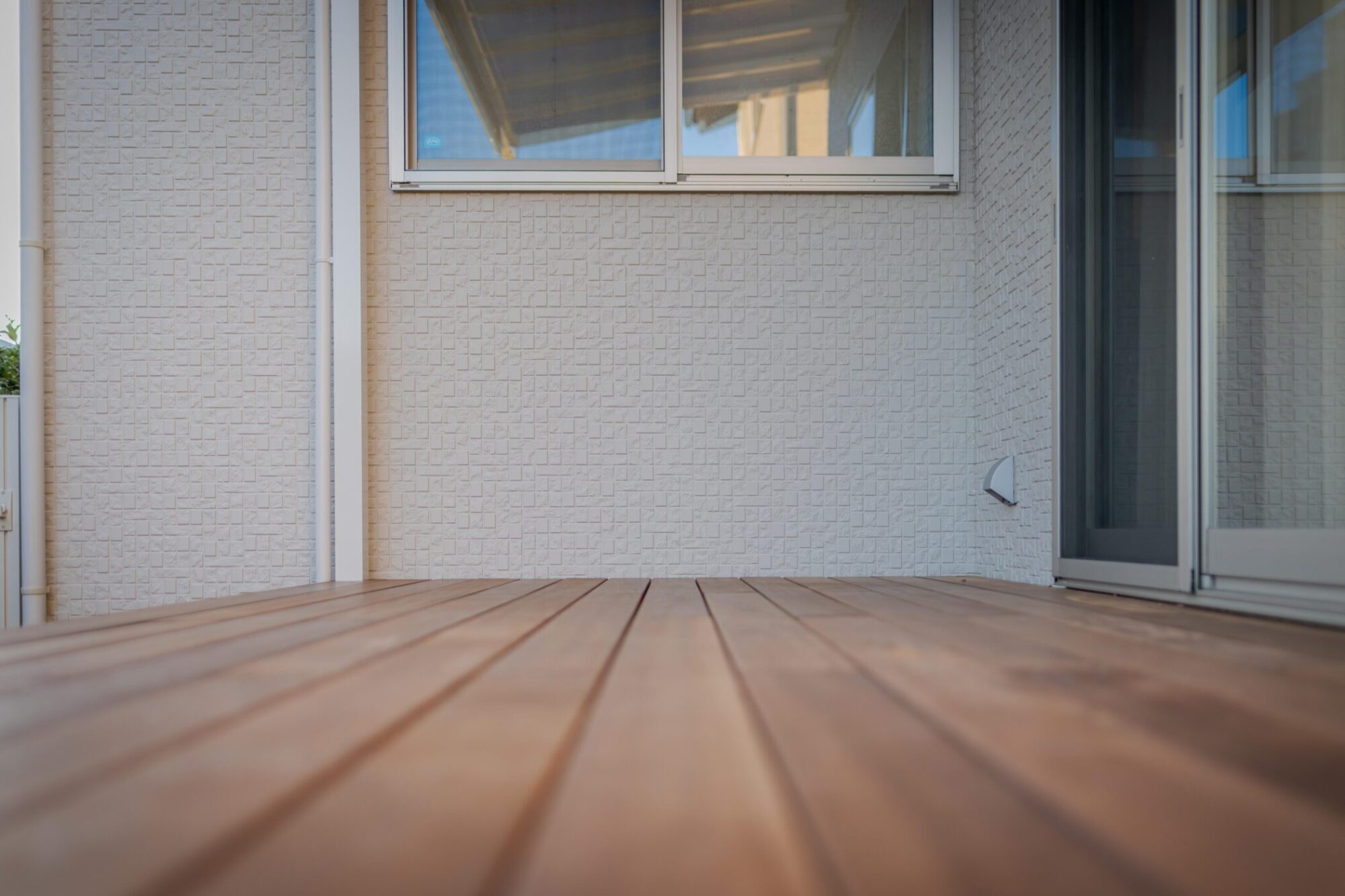 天然木ウリンで仕上げられたデッキは、室内から見たときの迫力が違います。
