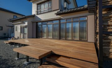 思い切ってデッキの面積を広くとることで、テーブルやイスを置くときの自由度が広まります。