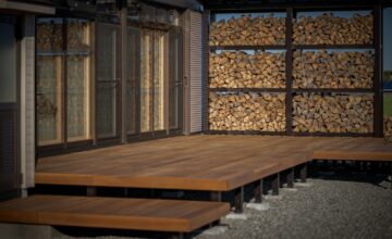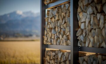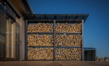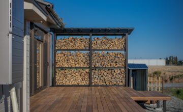 時間によって両面日が当たるよう設計し、風も抜けるので薪がよく乾きます。