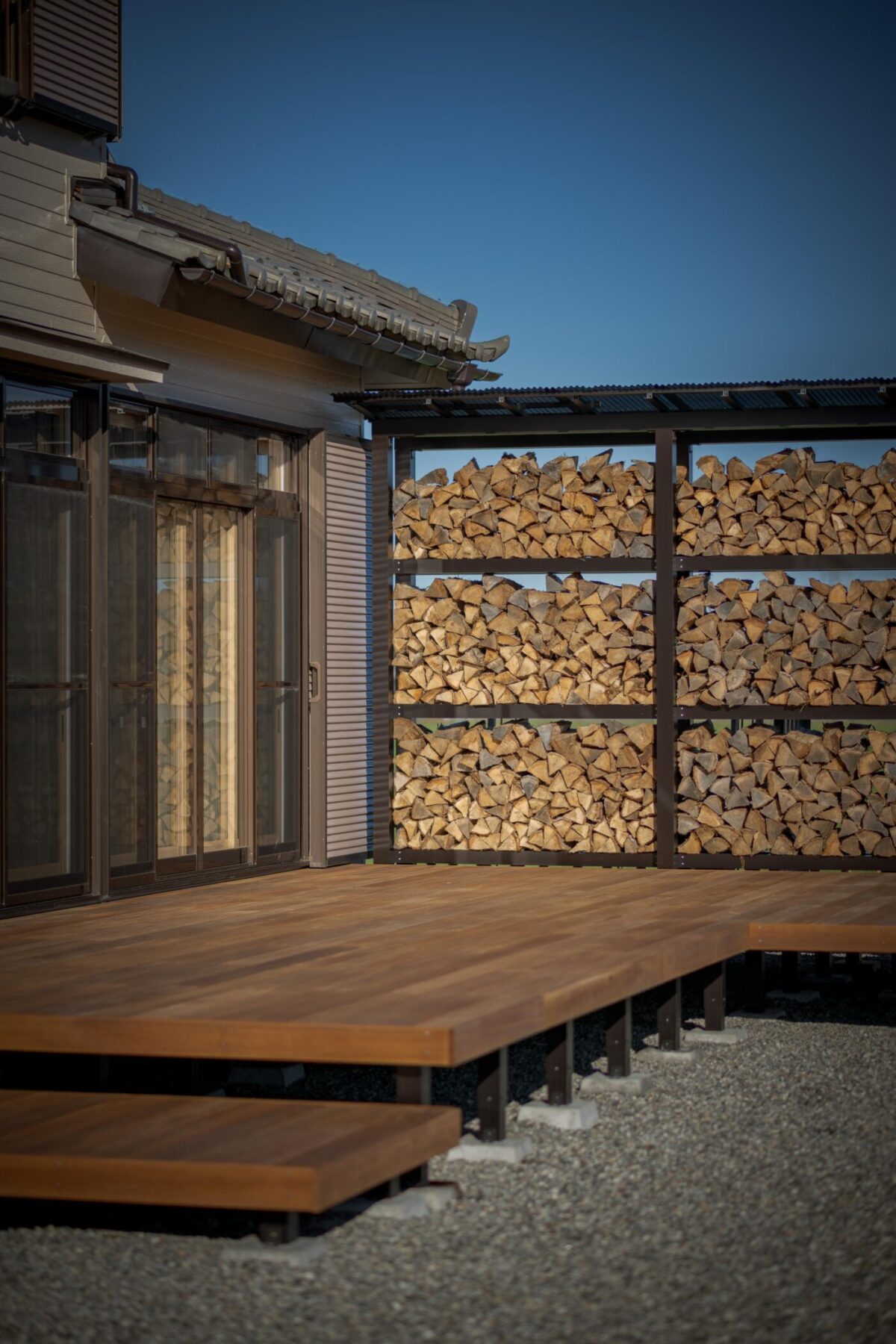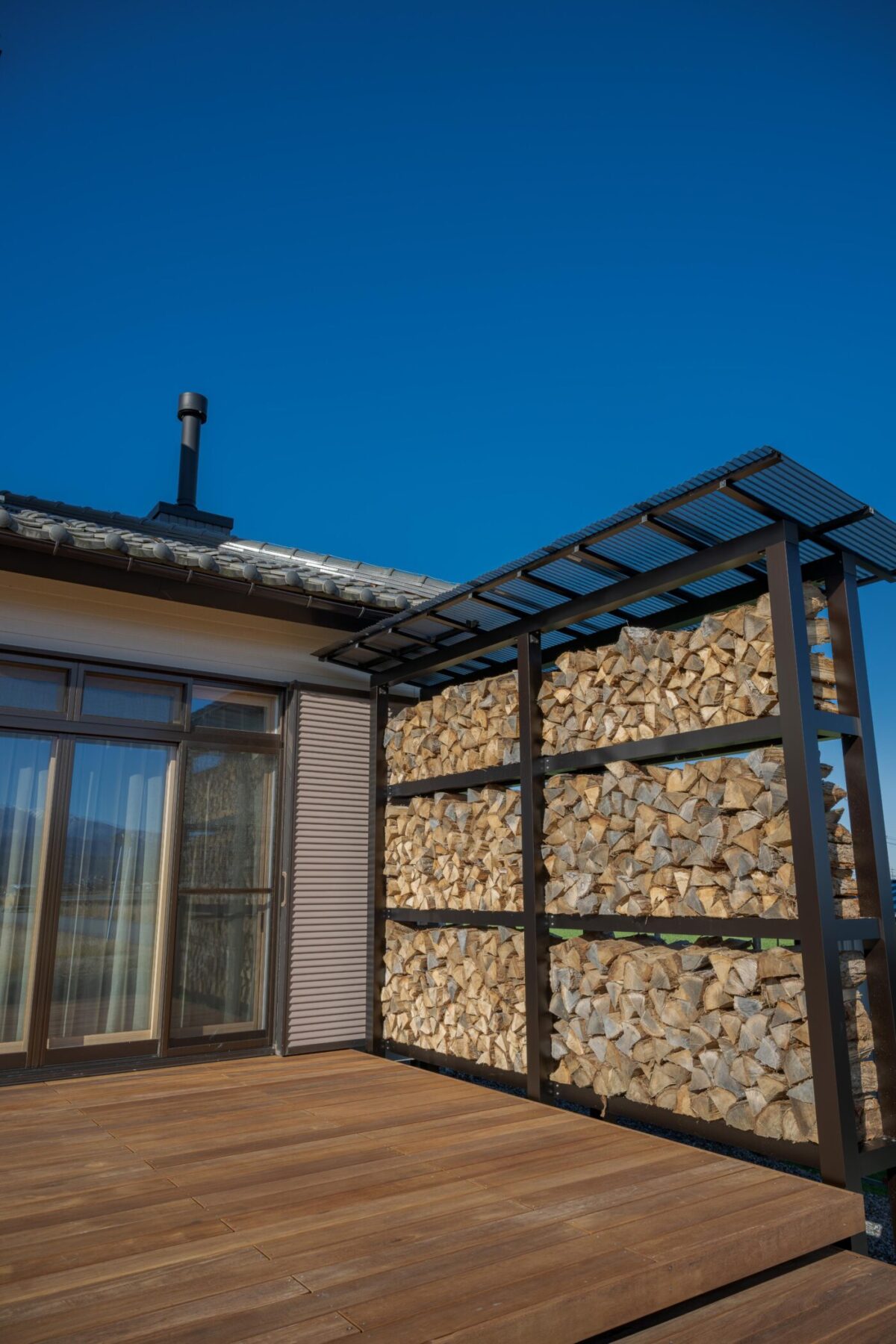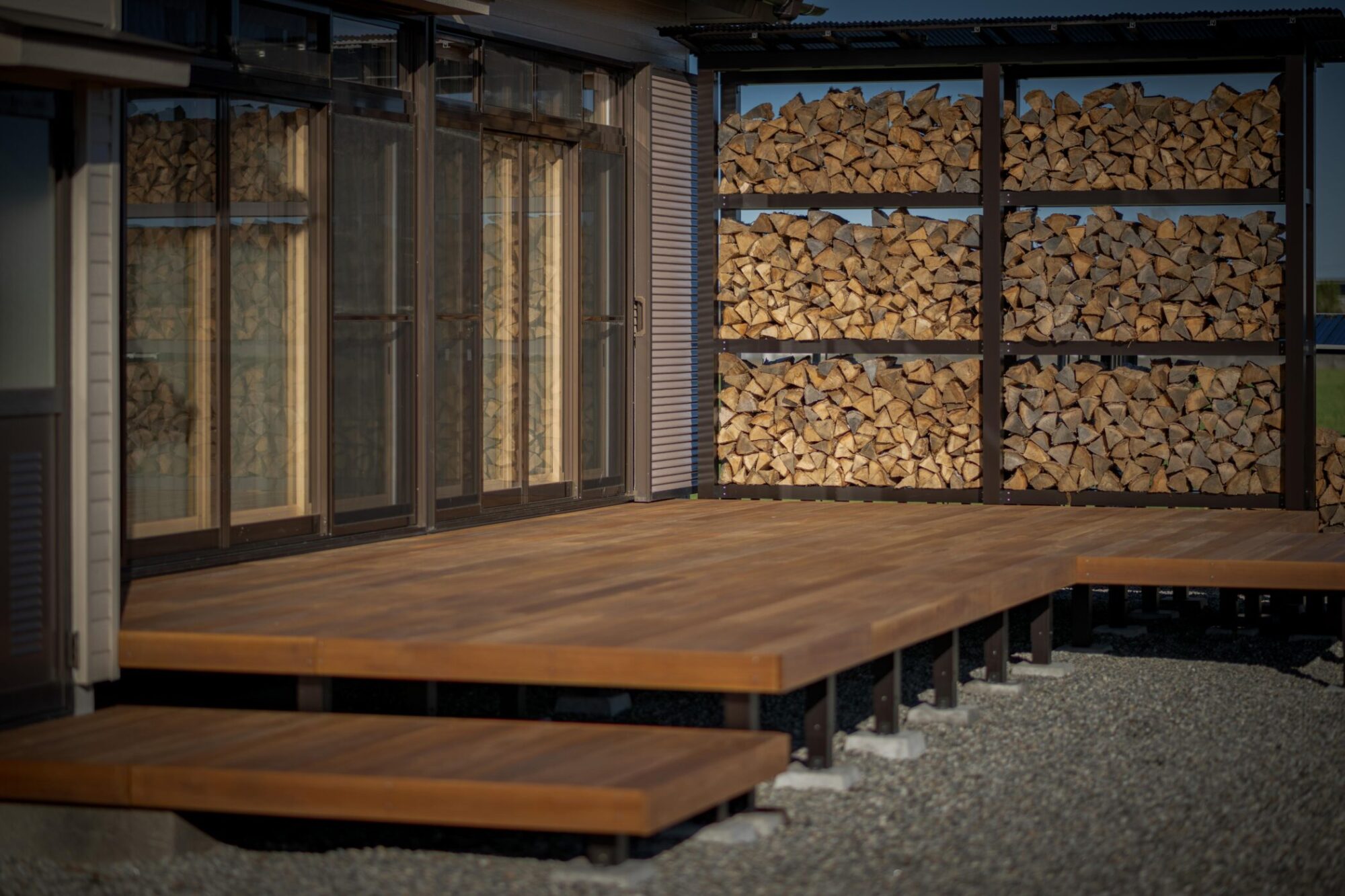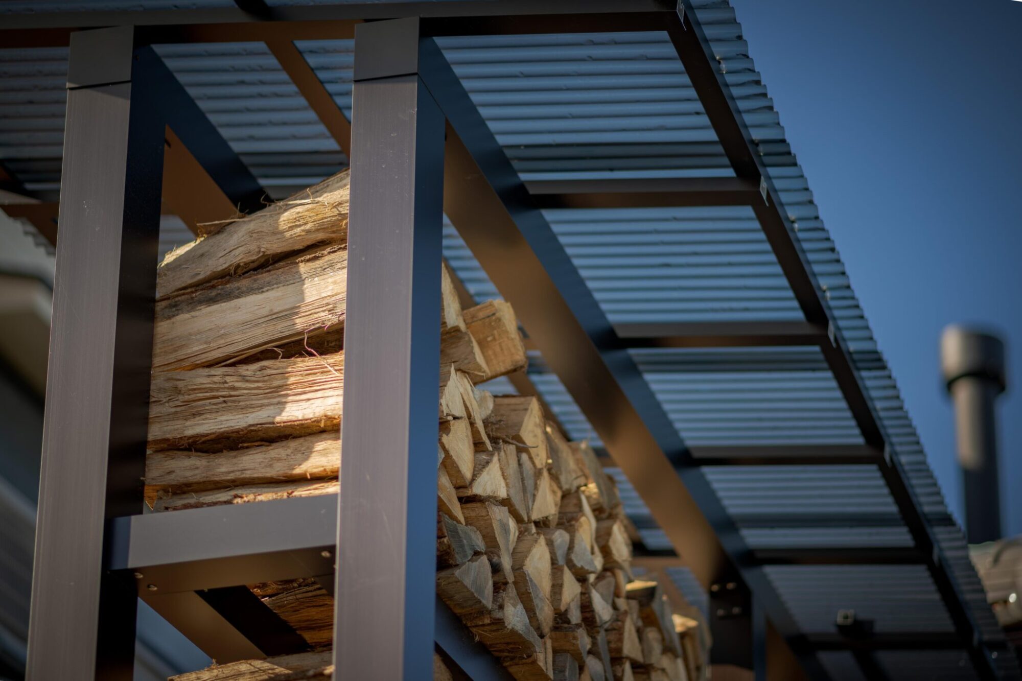 時間によって両面日が当たるよう設計し、風も抜けるので薪がよく乾きます。