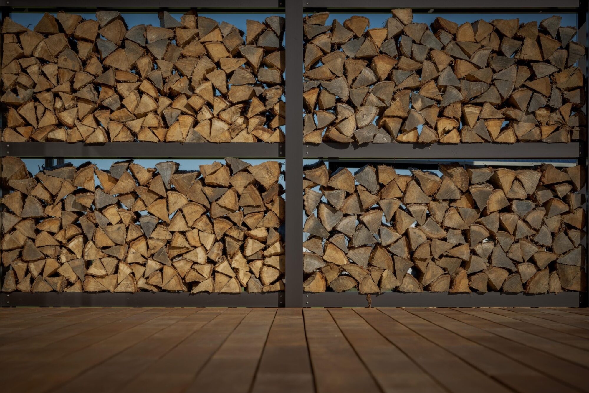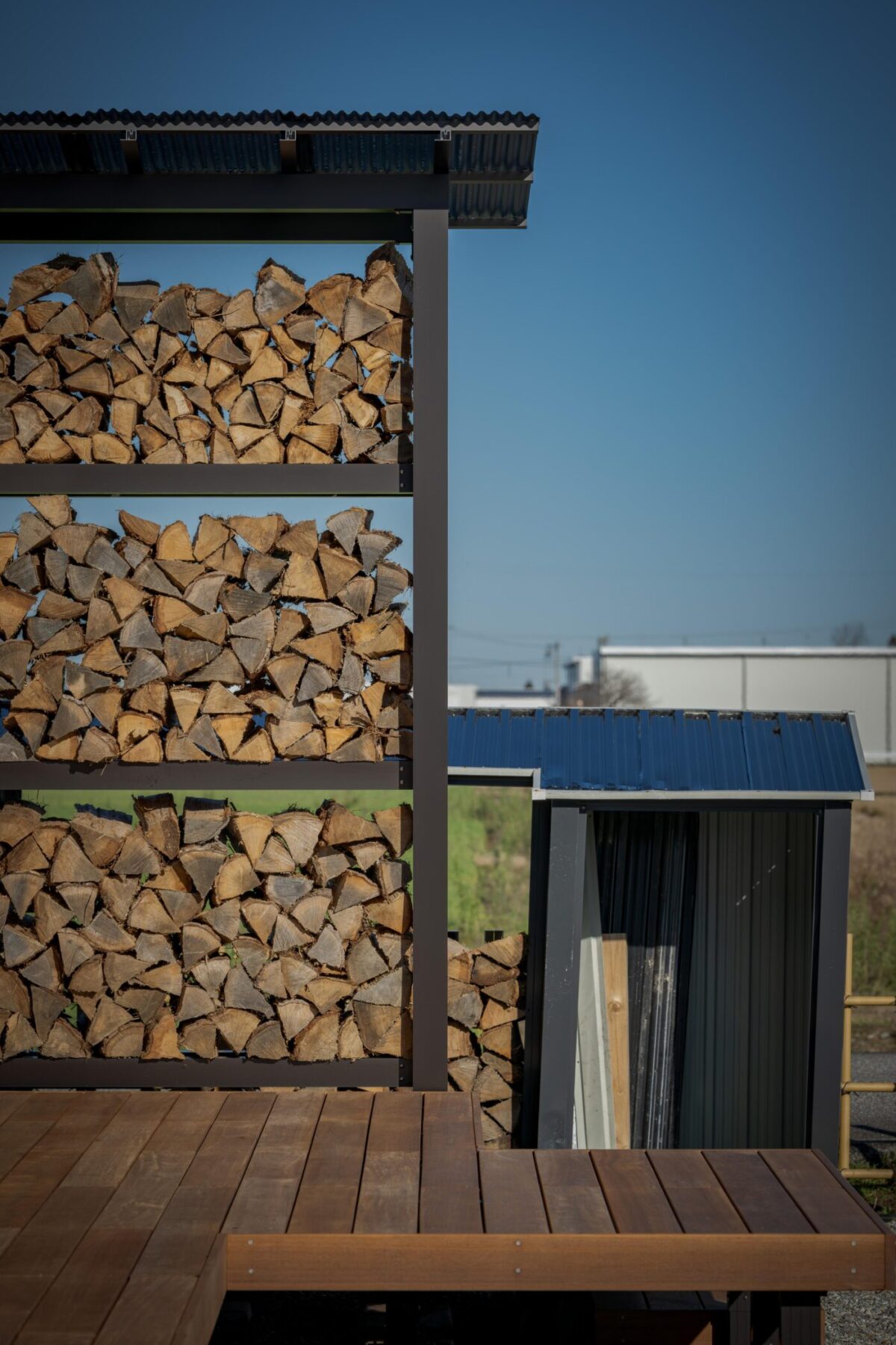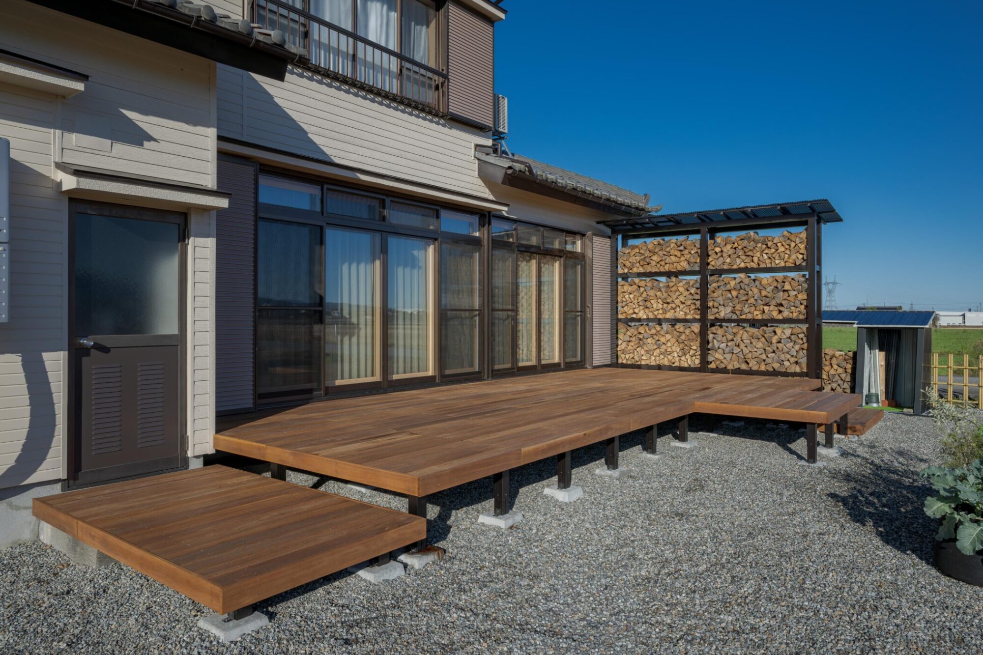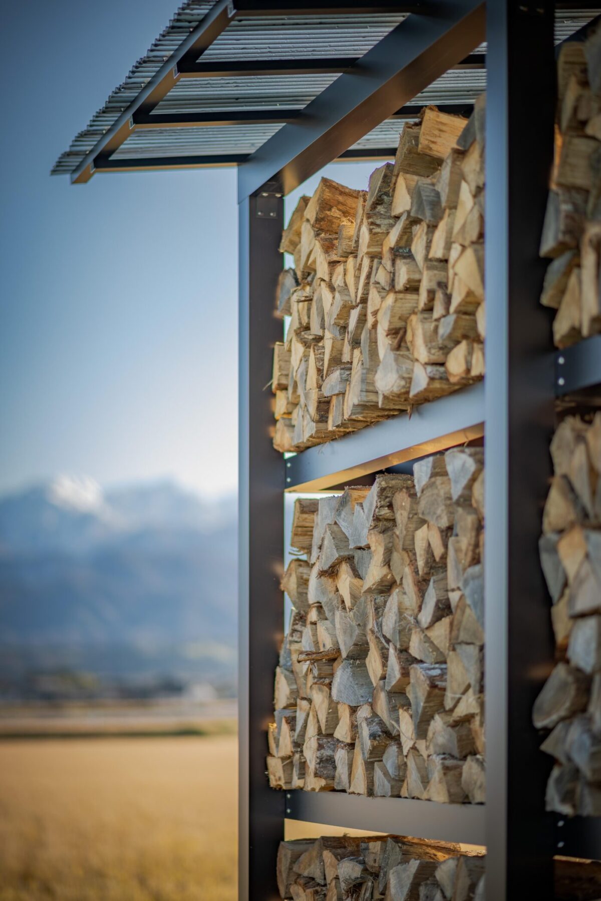 時間によって両面日が当たるよう設計し、風も抜けるので薪がよく乾きます。
