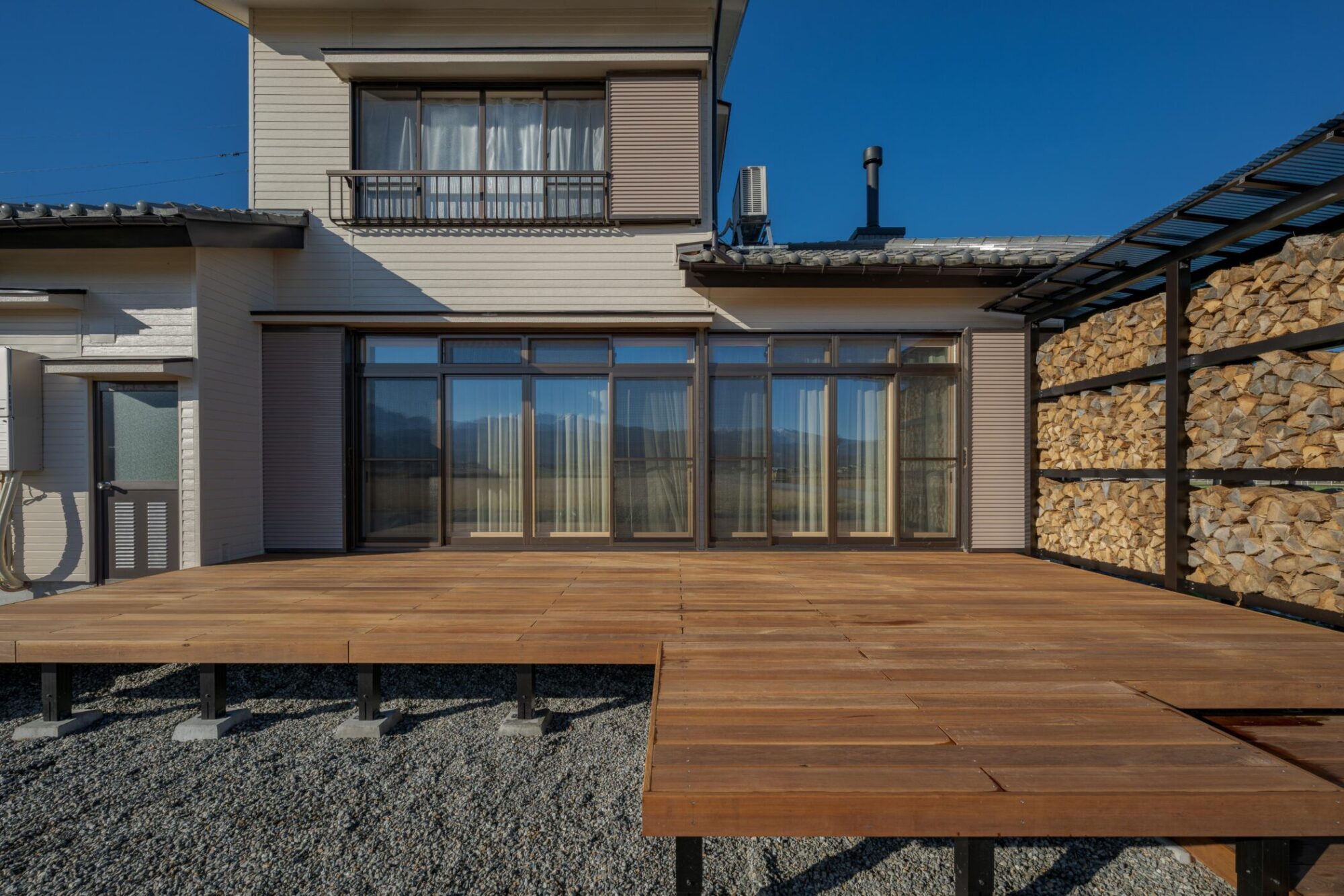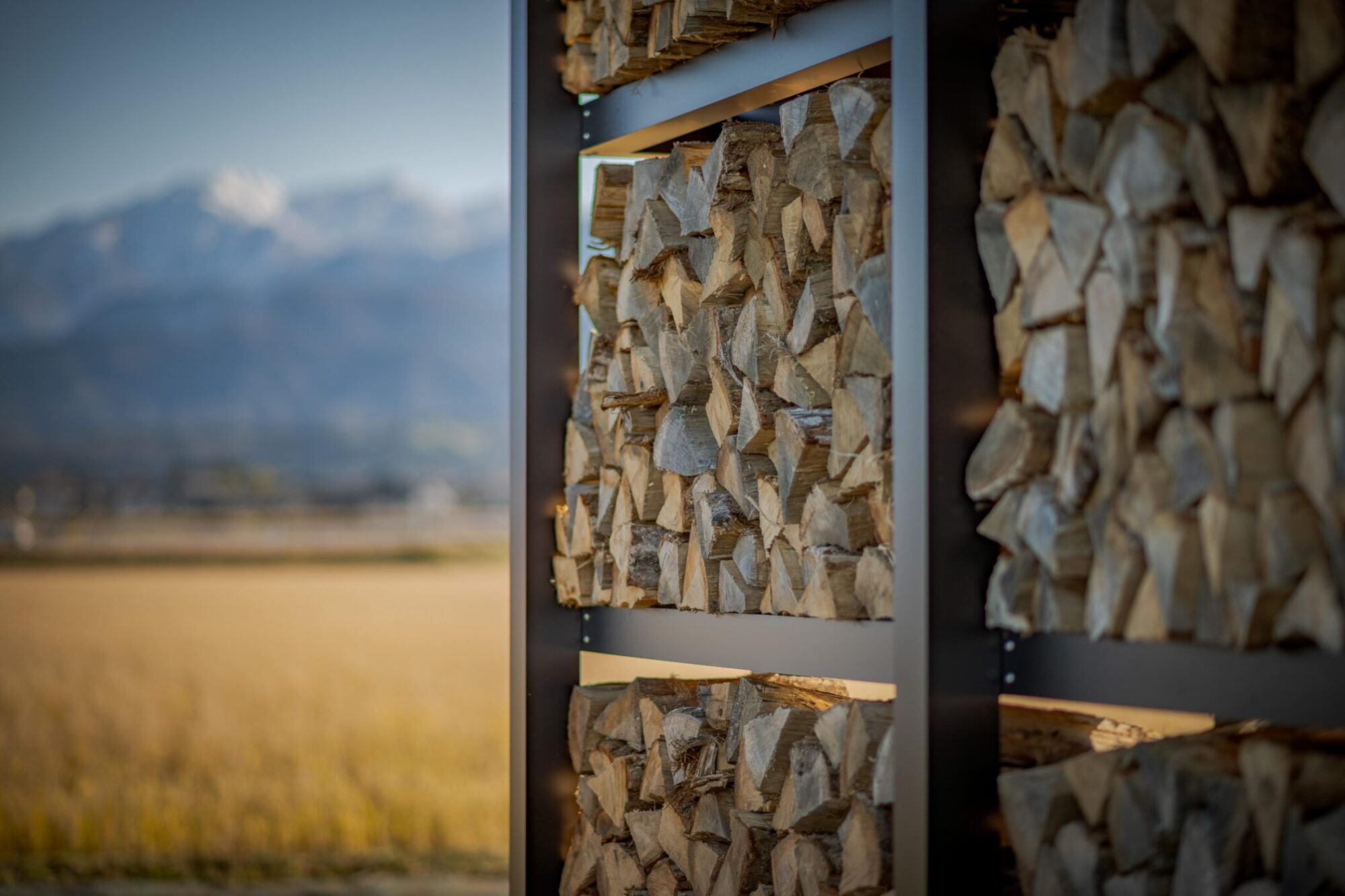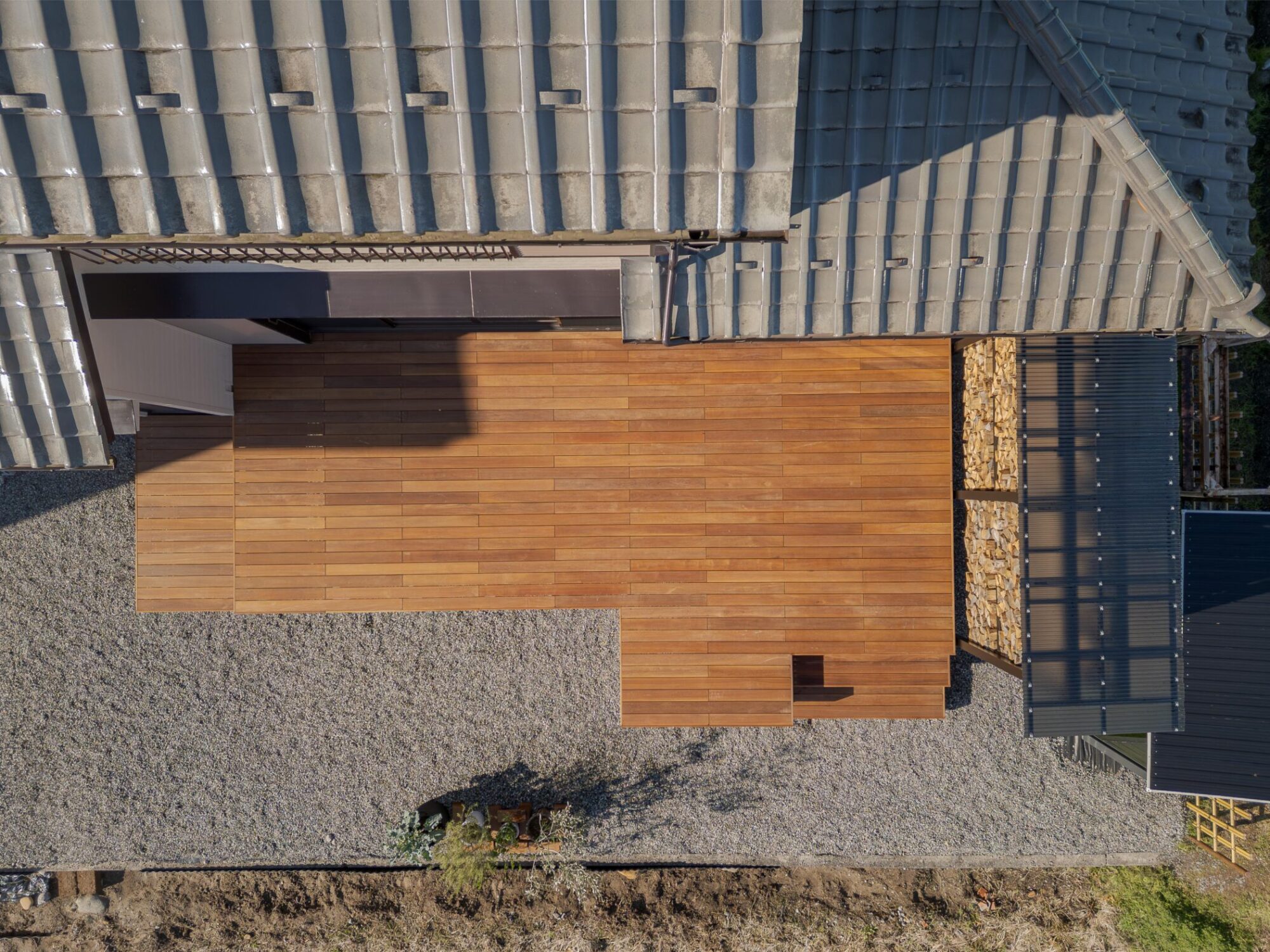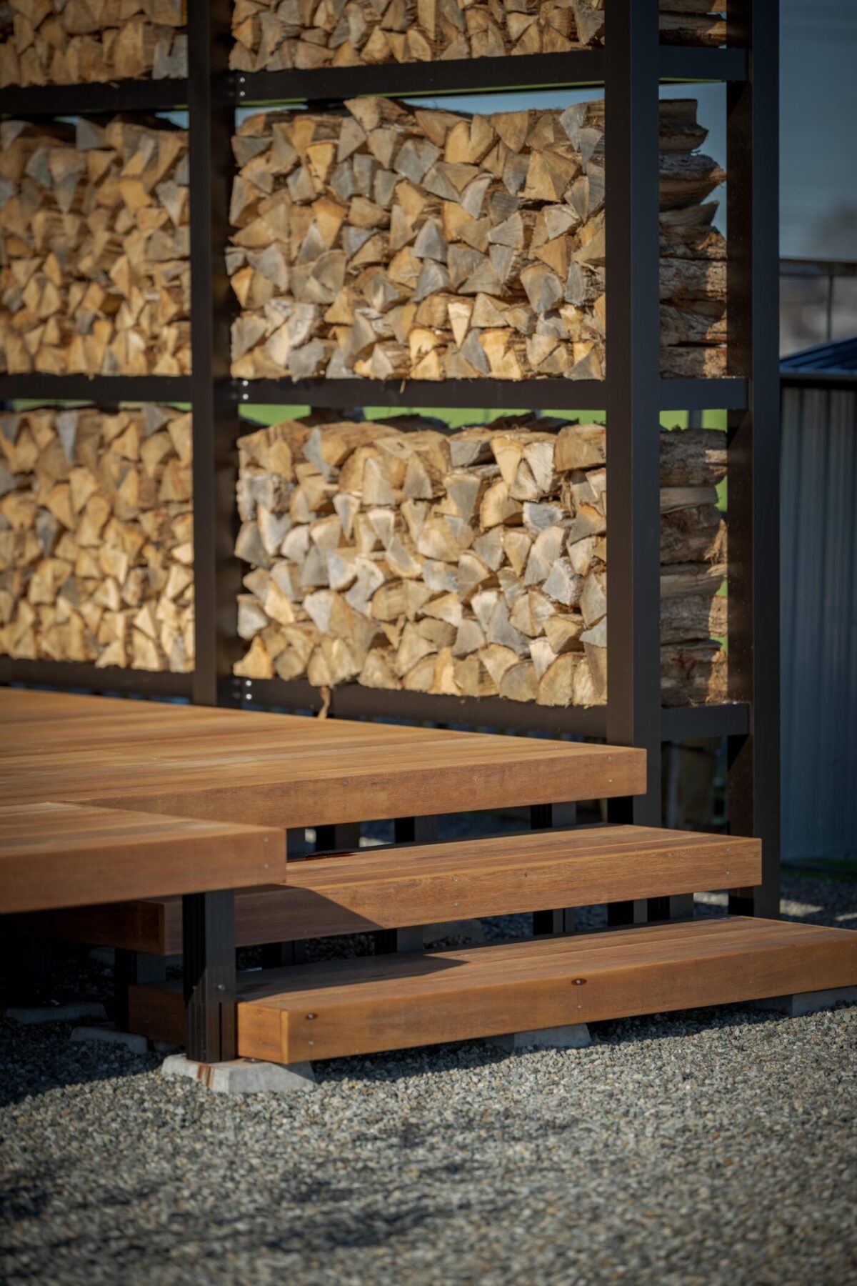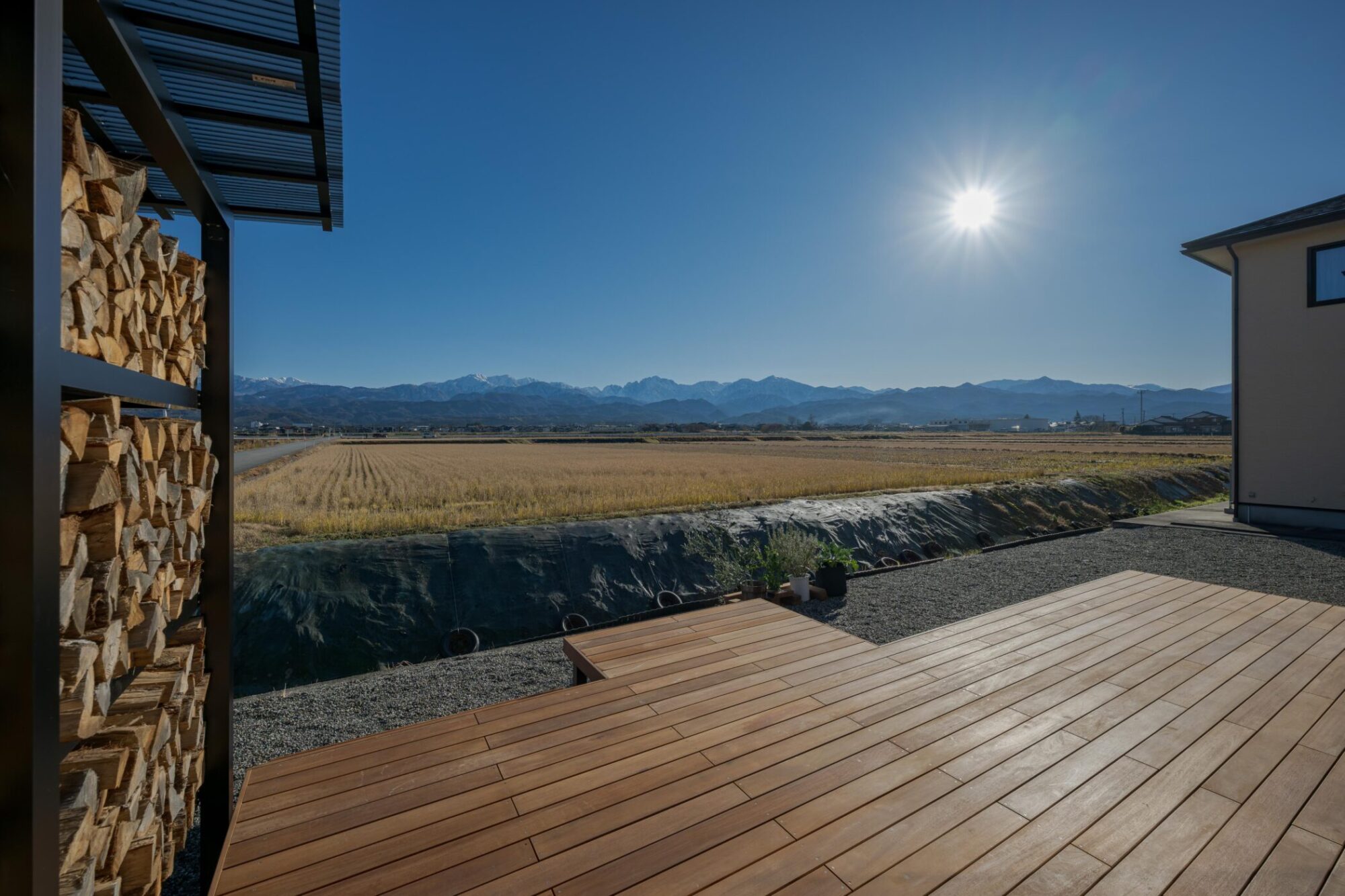 時間によって両面日が当たるよう設計し、風も抜けるので薪がよく乾きます。