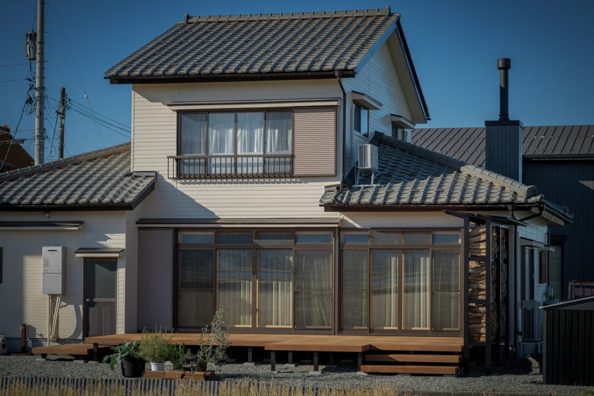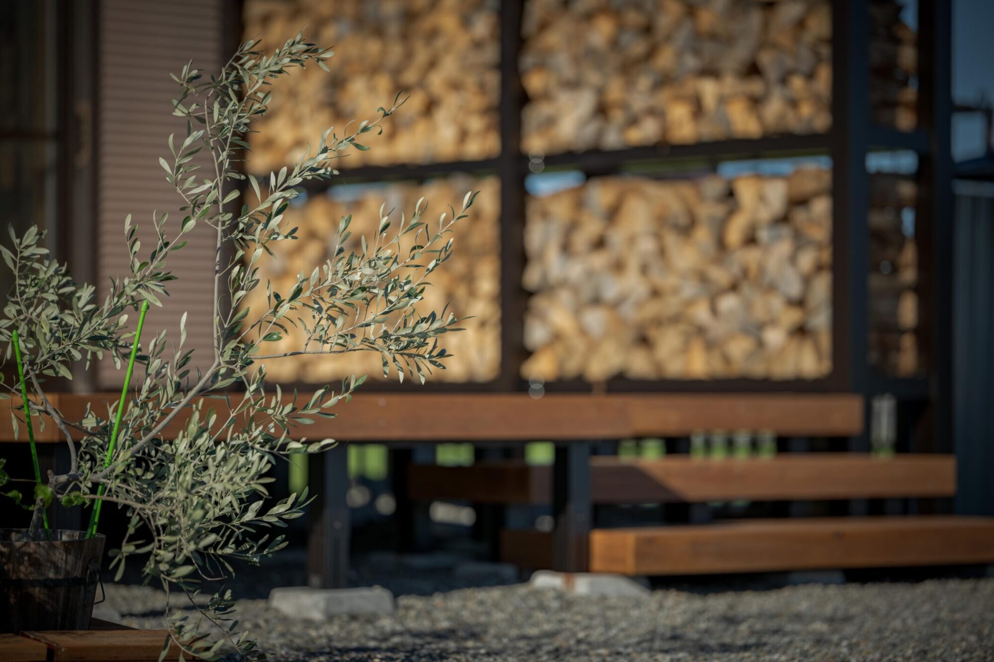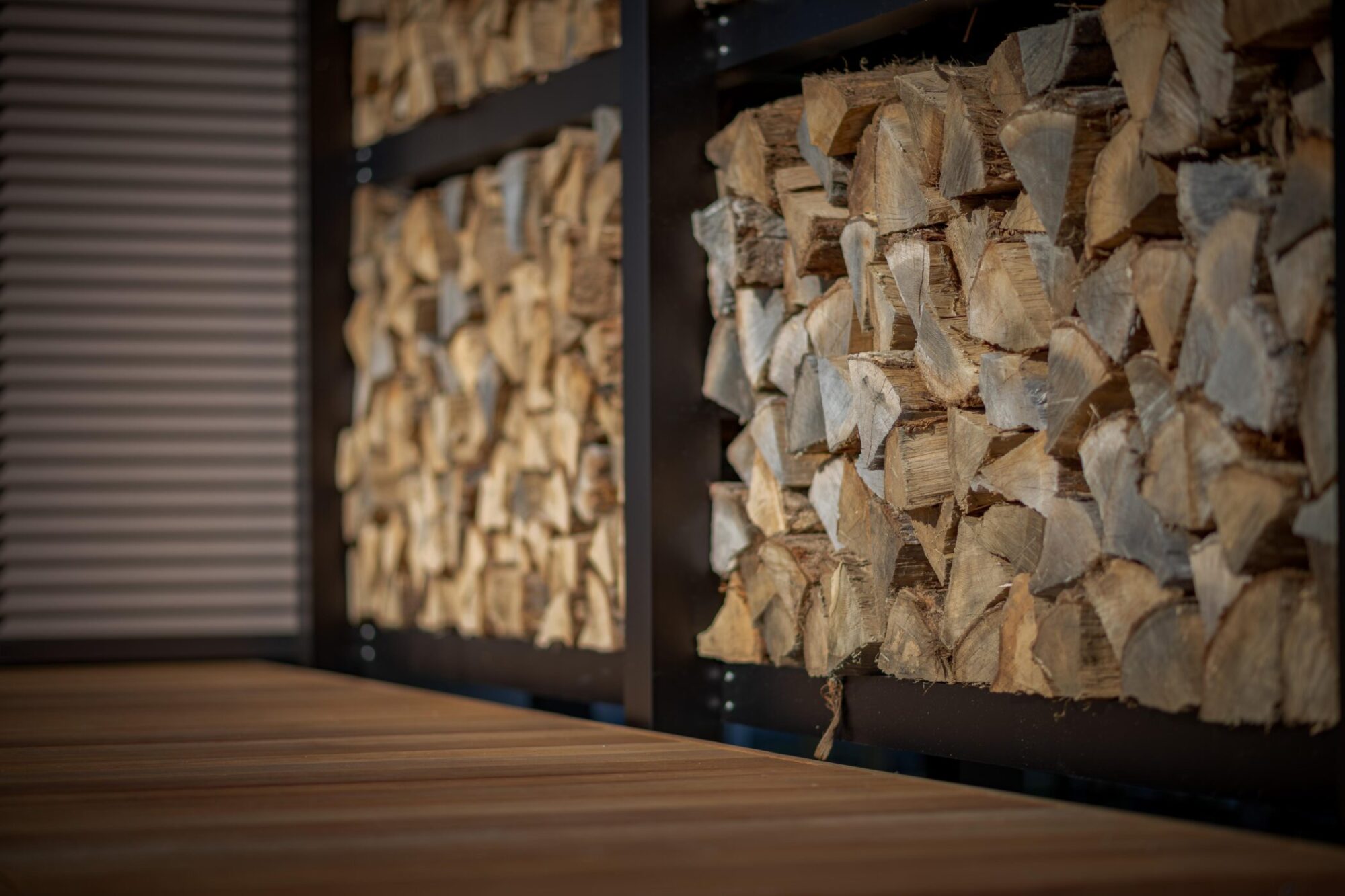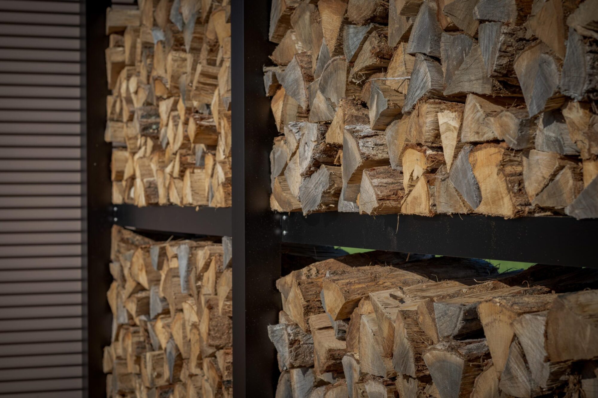 時間によって両面日が当たるよう設計し、風も抜けるので薪がよく乾きます。