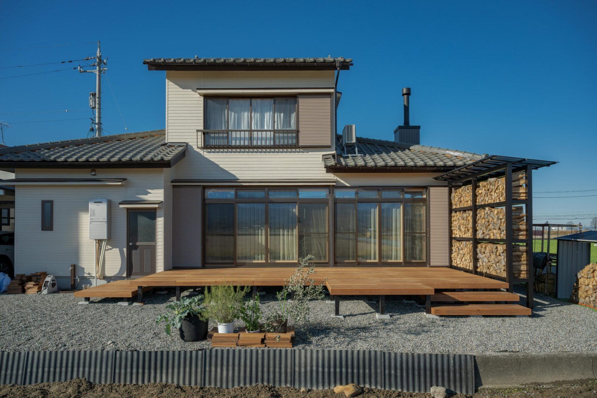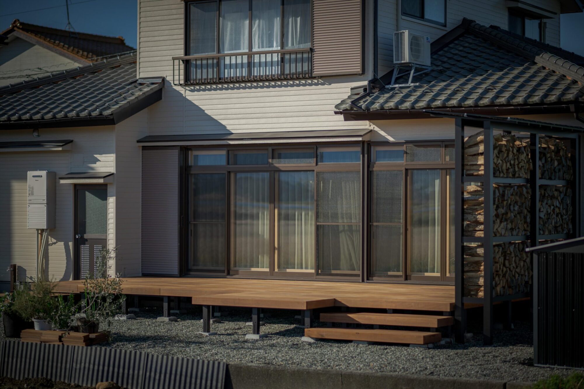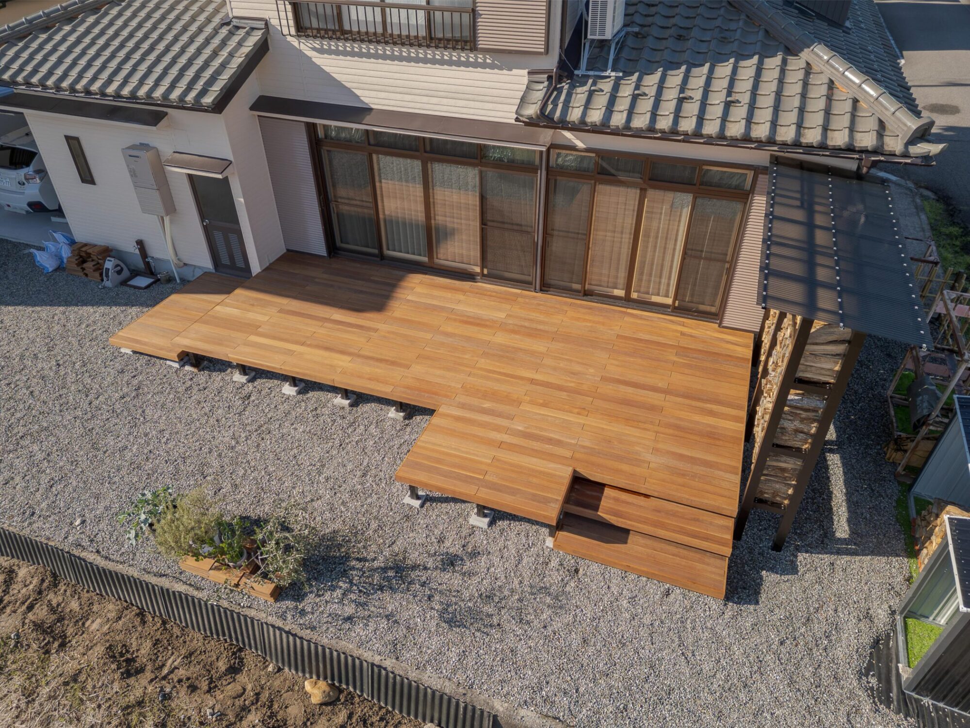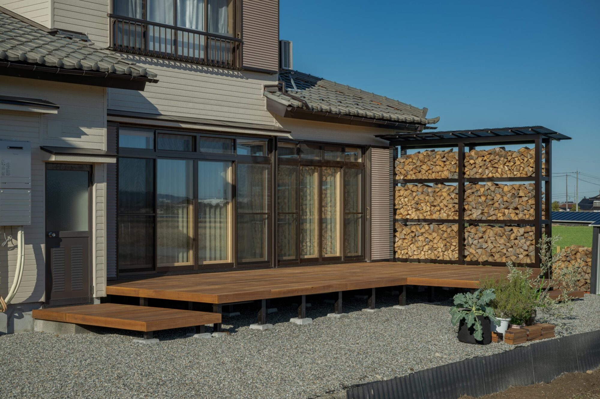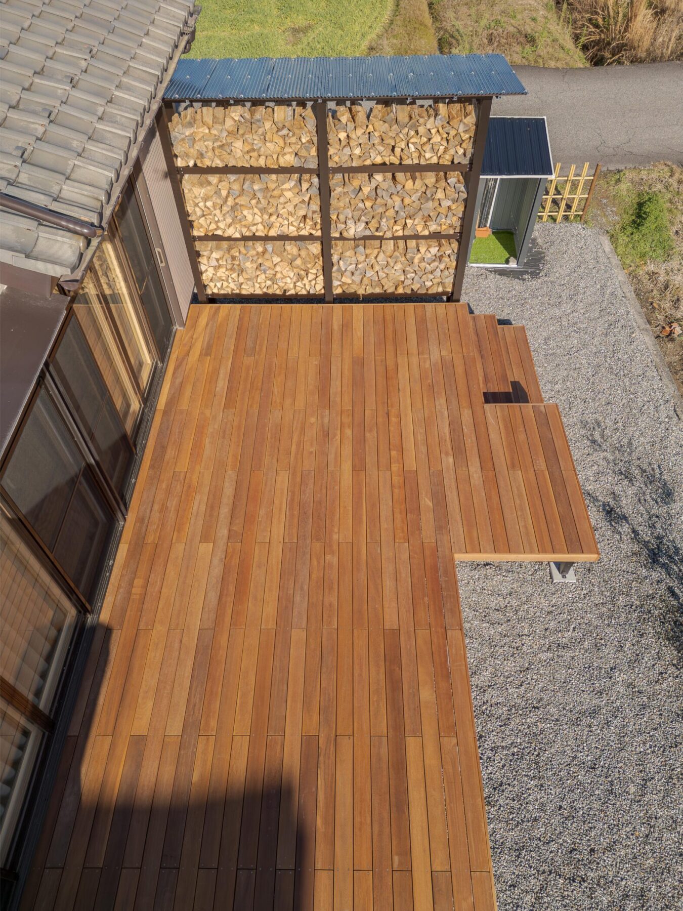 もともと薪棚はほかにもあったのですが、目隠しフェンスを兼ねたオリジナル薪棚を増設。