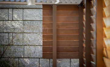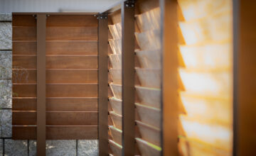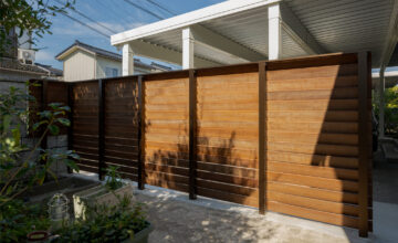 通常の横板張りフェンスと違い、完全目隠しでありながら通風を確保しつつ、立体的で動きのあるデザインがルーバーフェンス最大の特徴!完全目隠しフェンスで陥りがちな、『圧迫感のある壁感』が出にくいのがポイントです。