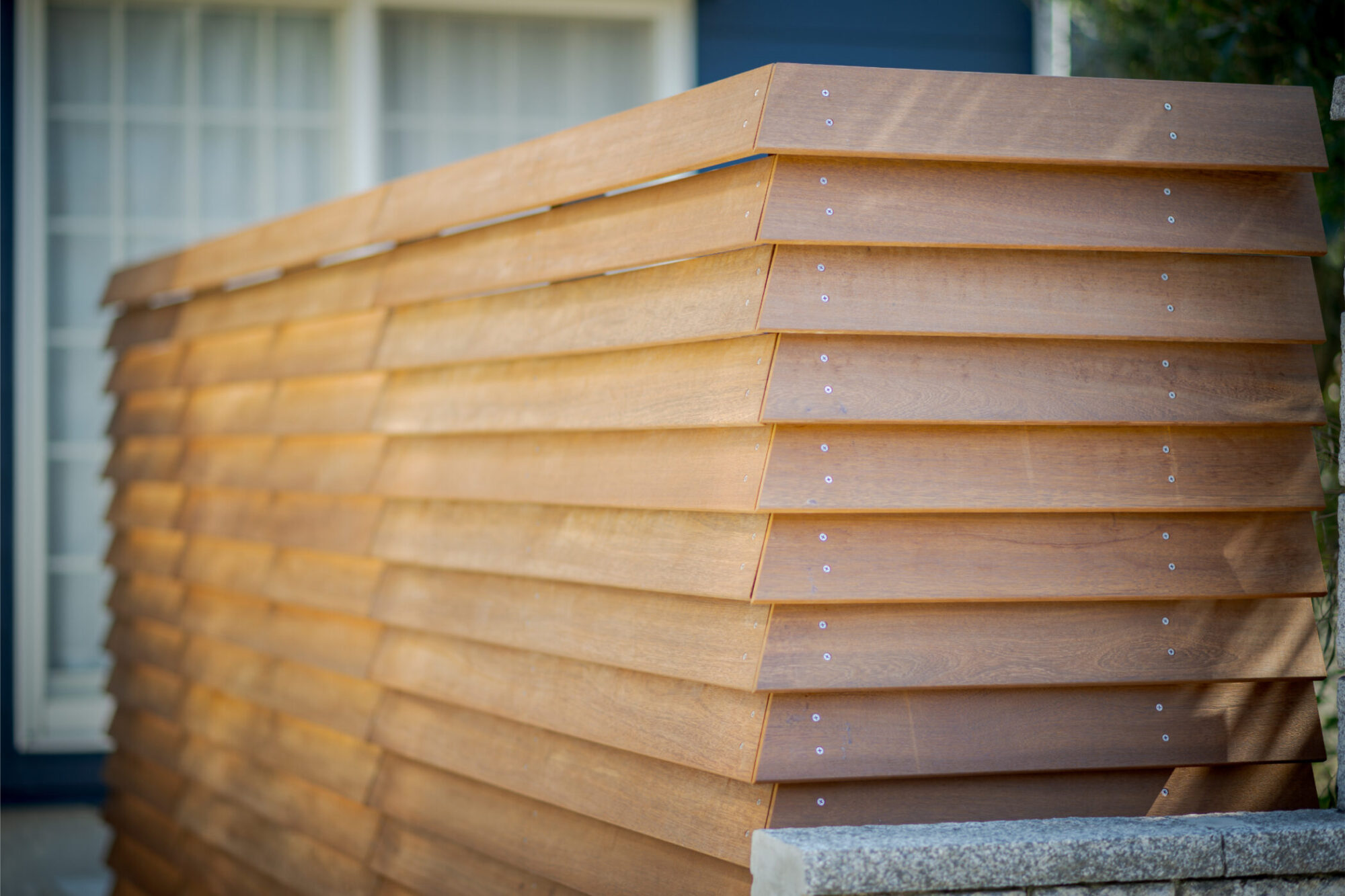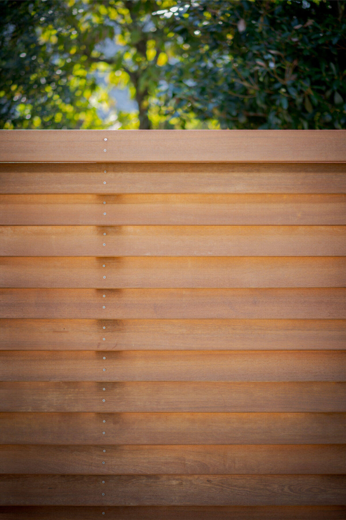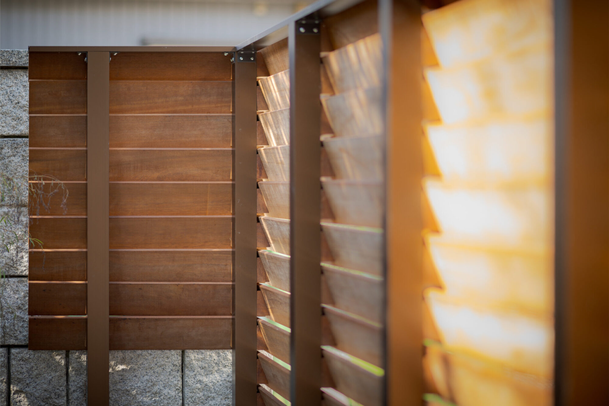 通常の横板張りフェンスと違い、完全目隠しでありながら通風を確保しつつ、立体的で動きのあるデザインがルーバーフェンス最大の特徴!完全目隠しフェンスで陥りがちな、『圧迫感のある壁感』が出にくいのがポイントです。