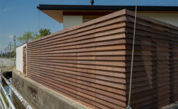角度をつけて設置することで、完全目隠しとしながらも、風が通り抜ける『通気性』を確保。