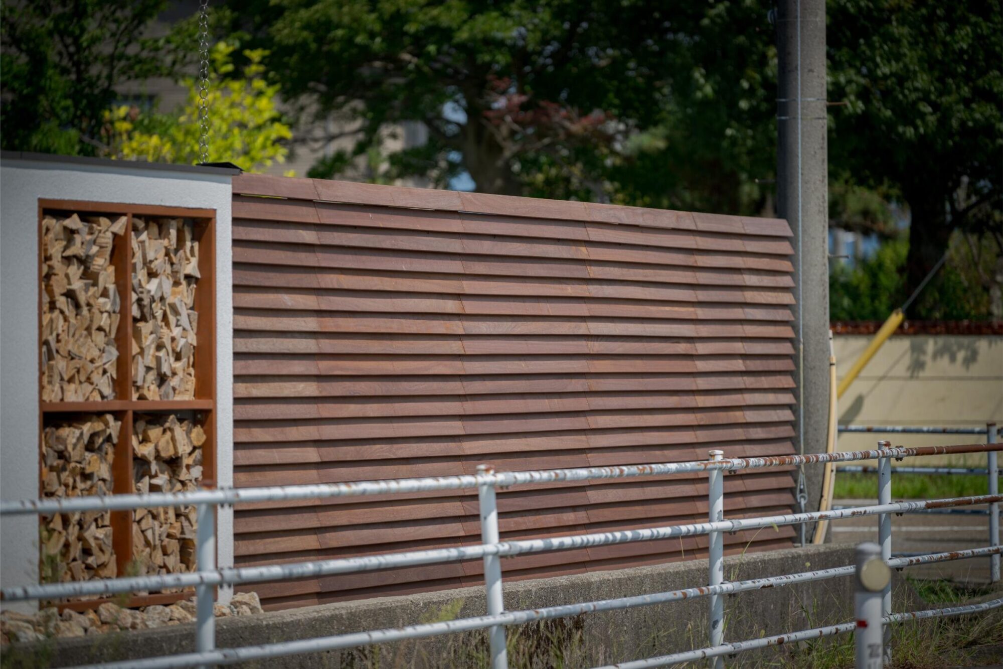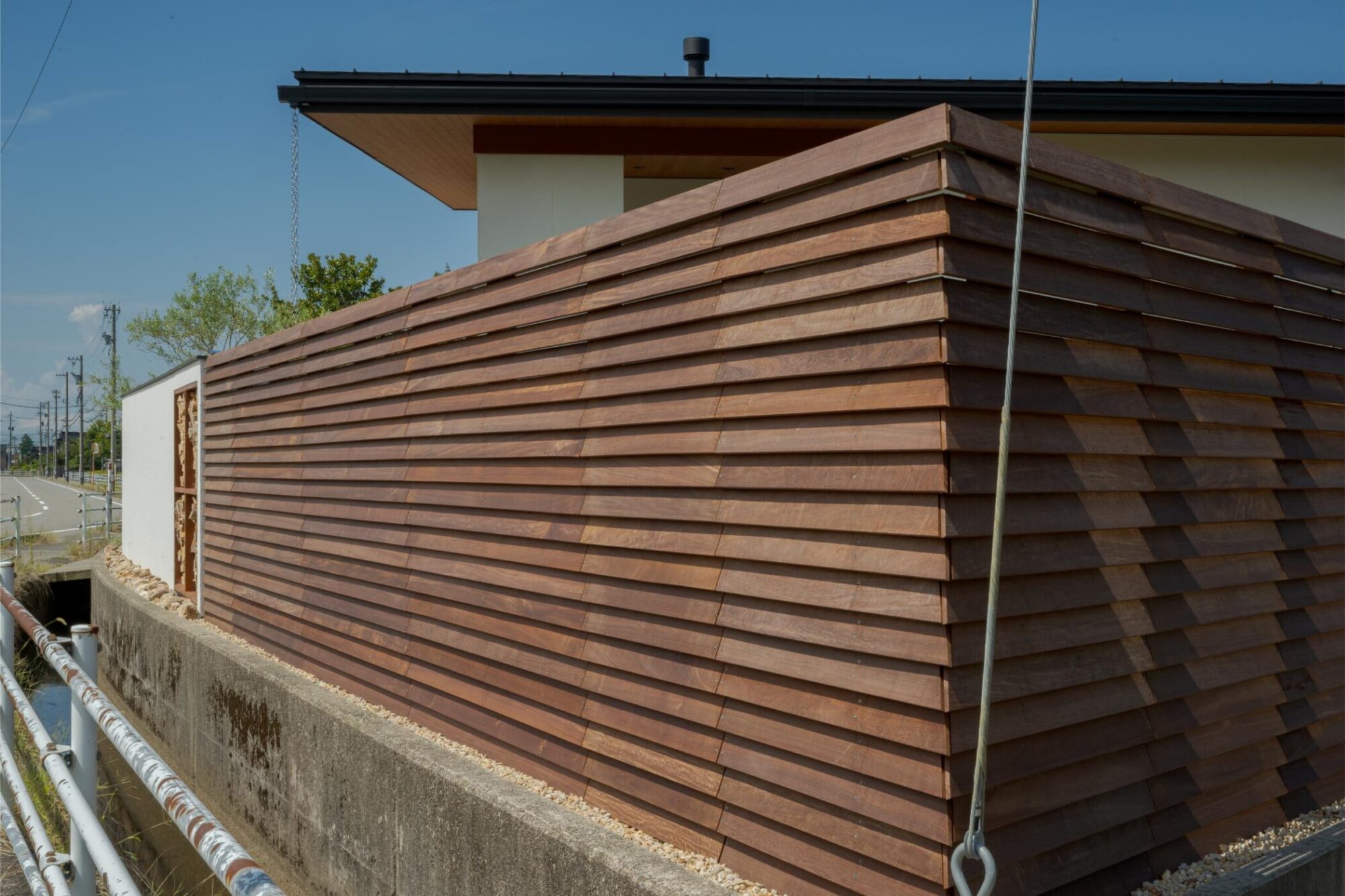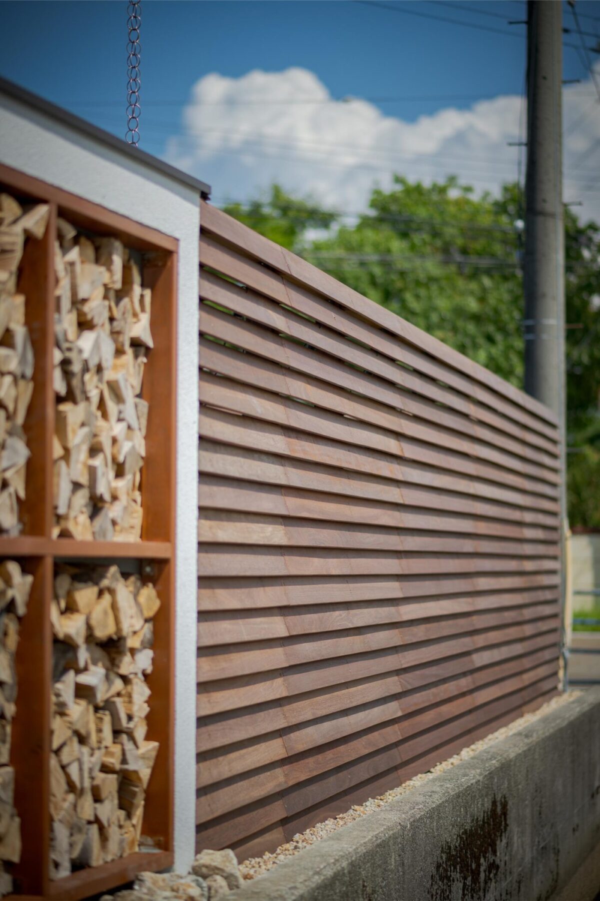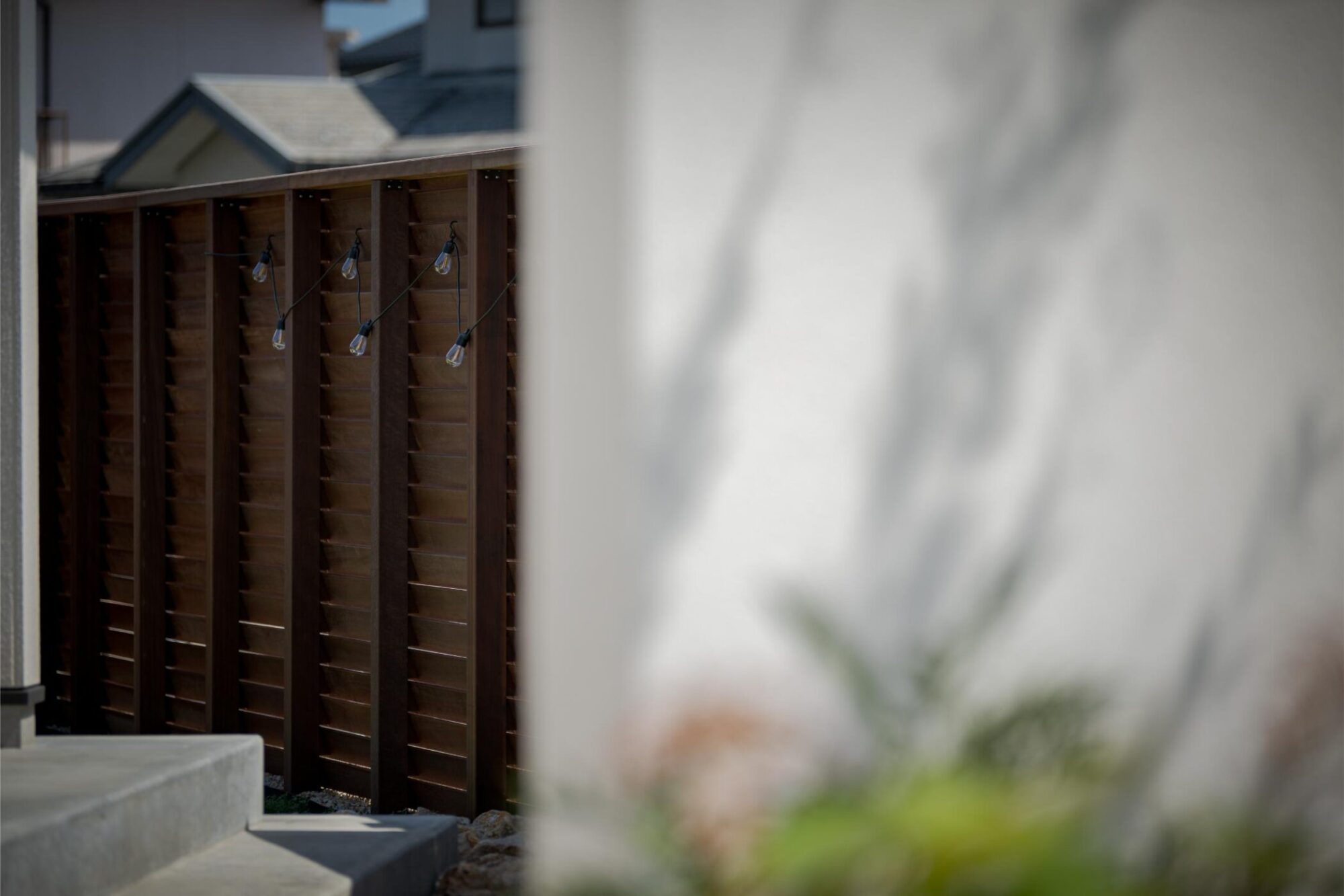 角度をつけて設置することで、完全目隠しとしながらも、風が通り抜ける『通気性』を確保。