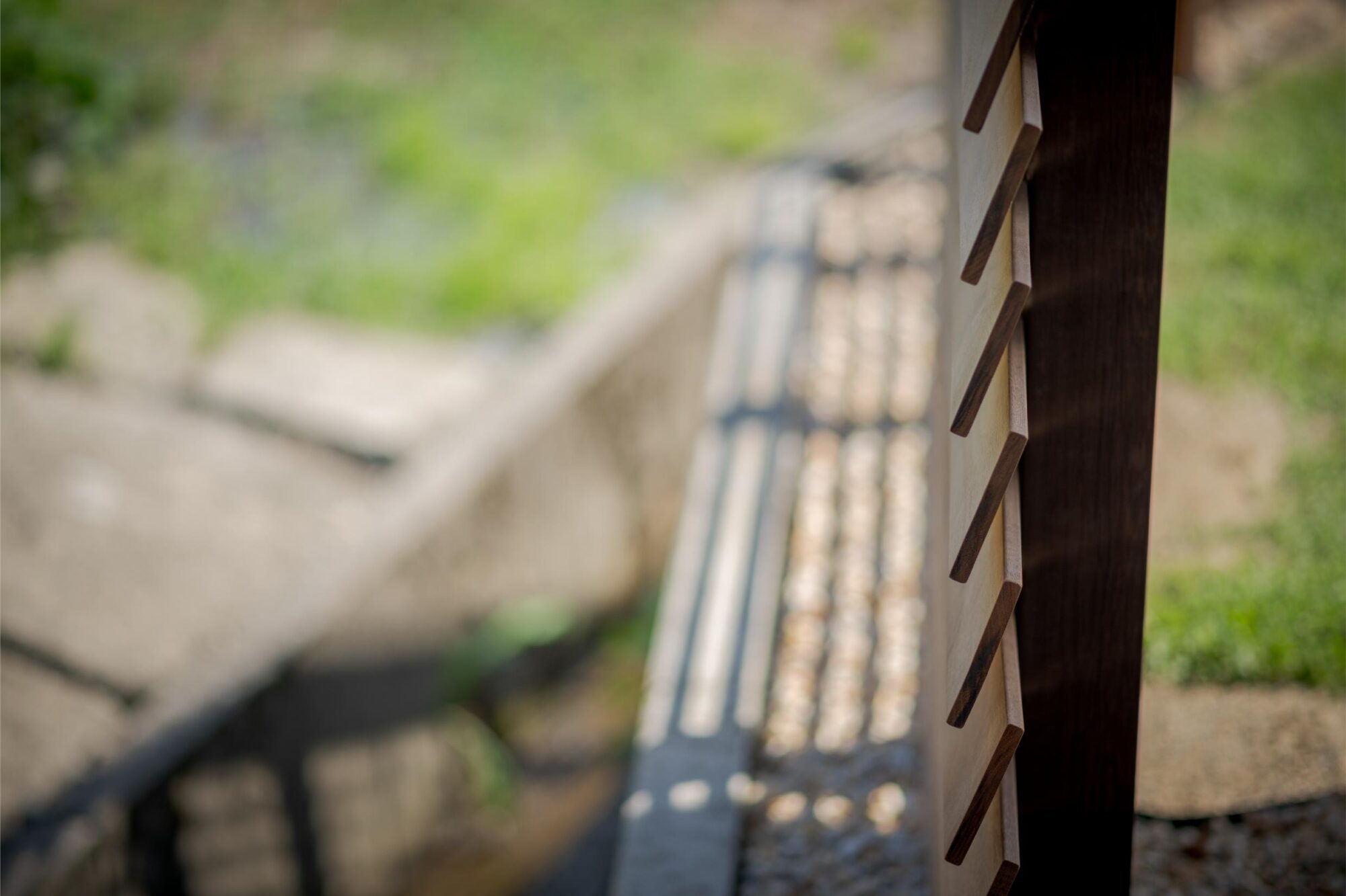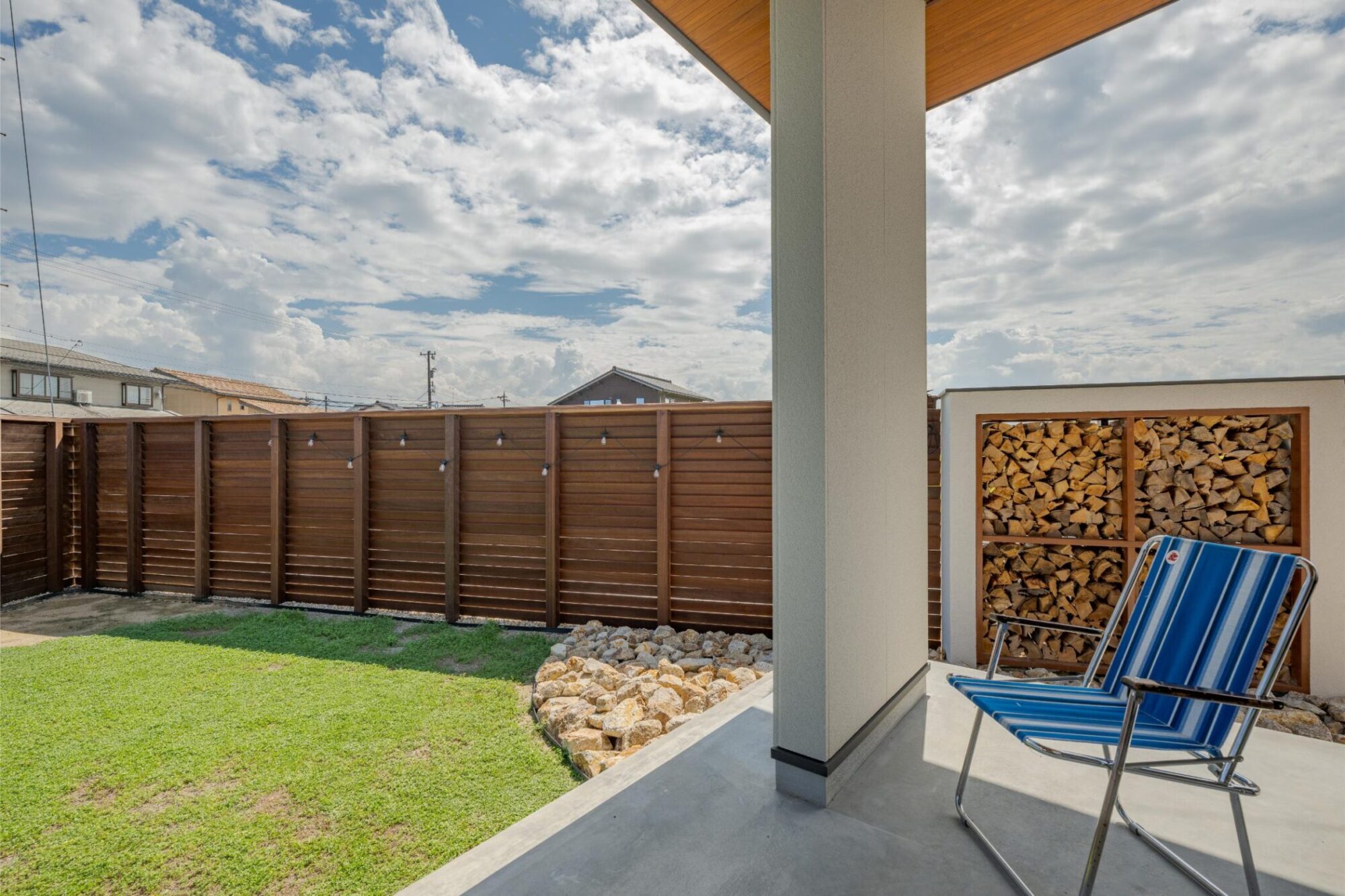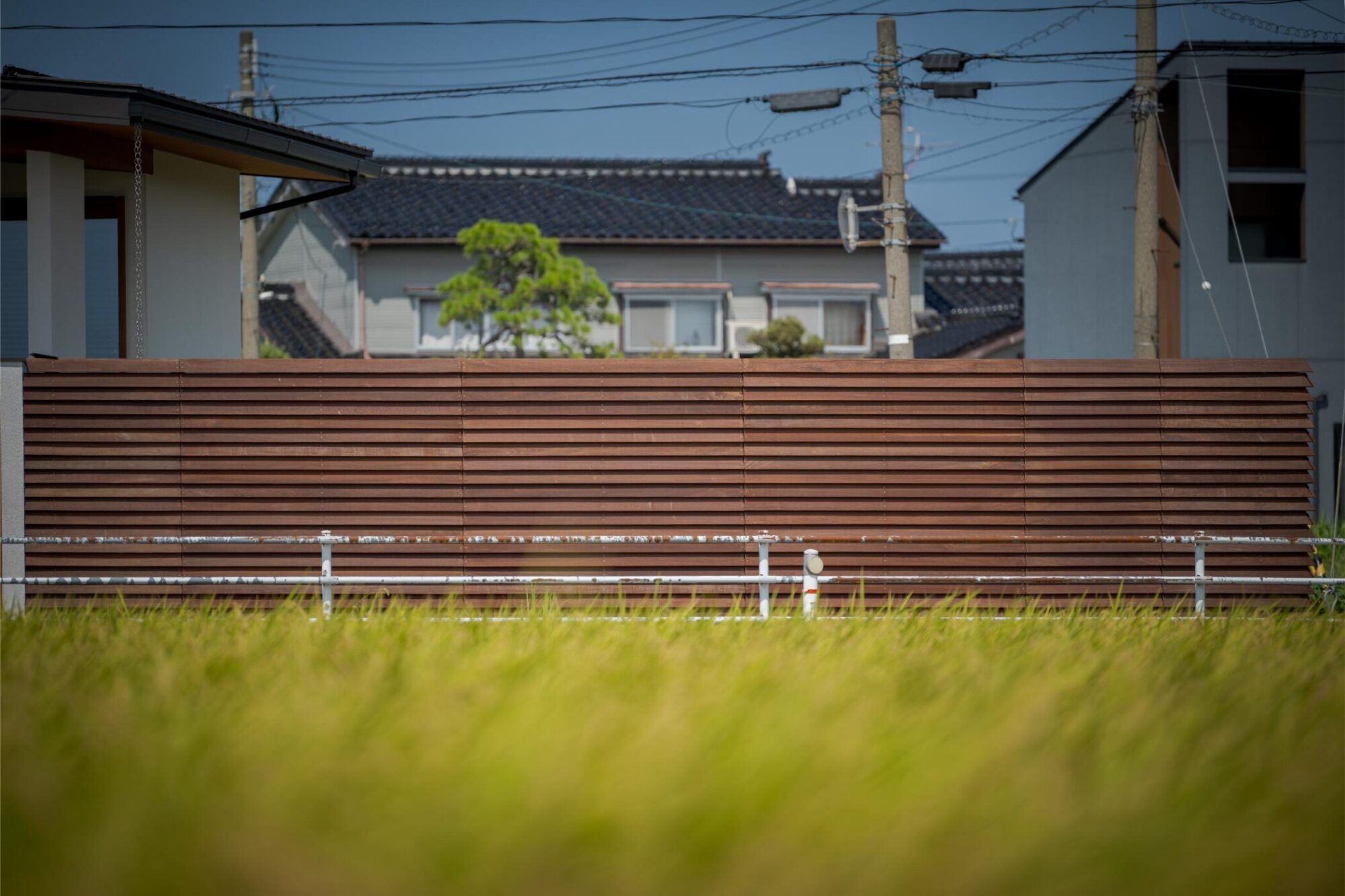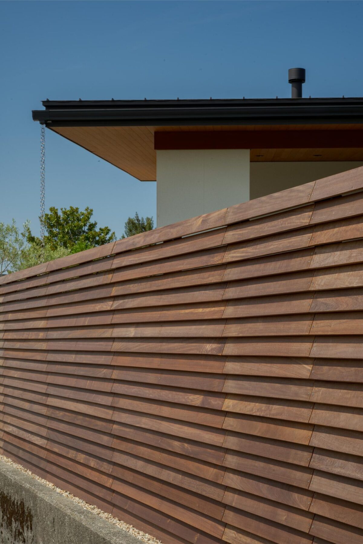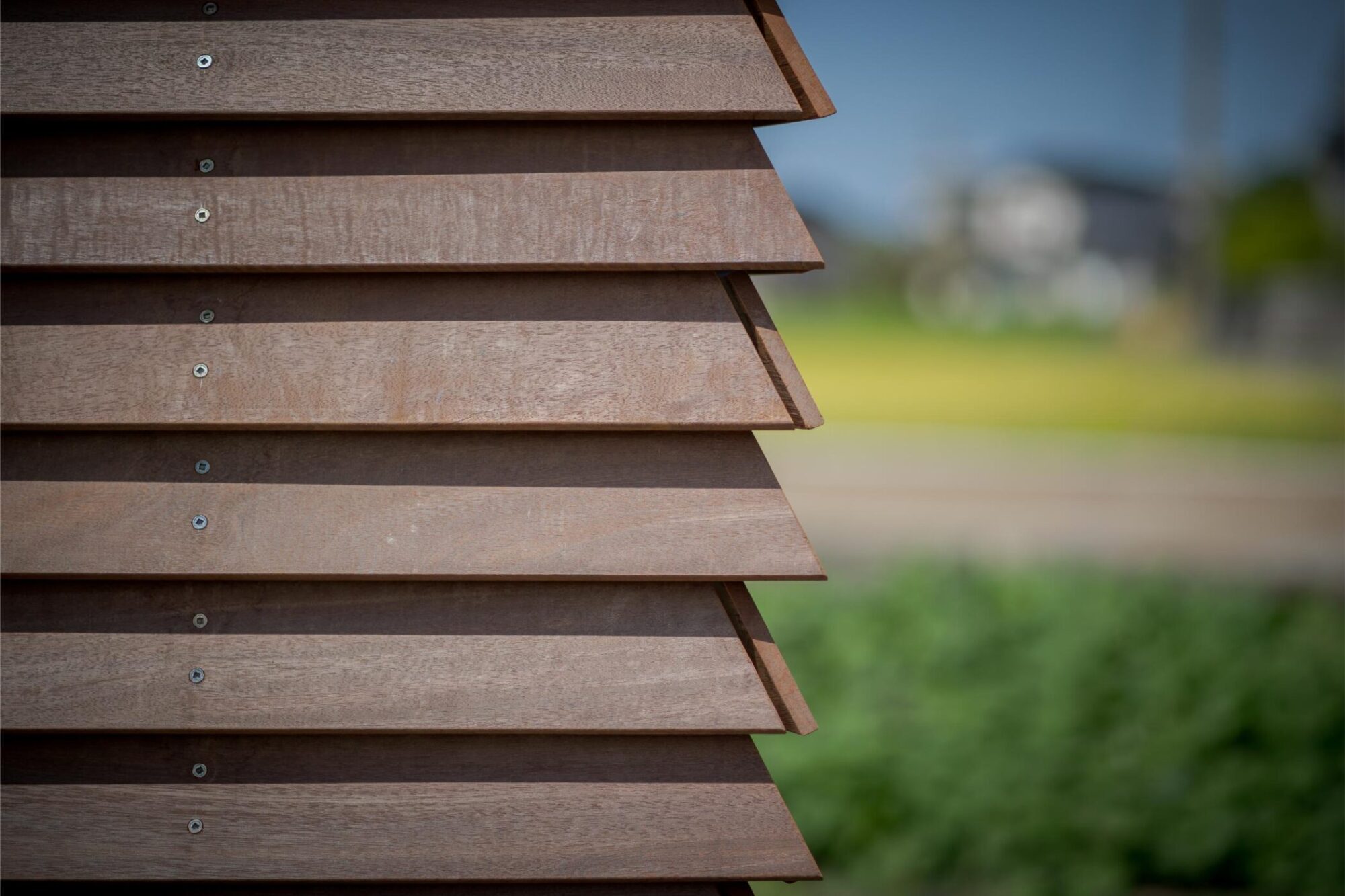 角度をつけて設置することで、完全目隠しとしながらも、風が通り抜ける『通気性』を確保。