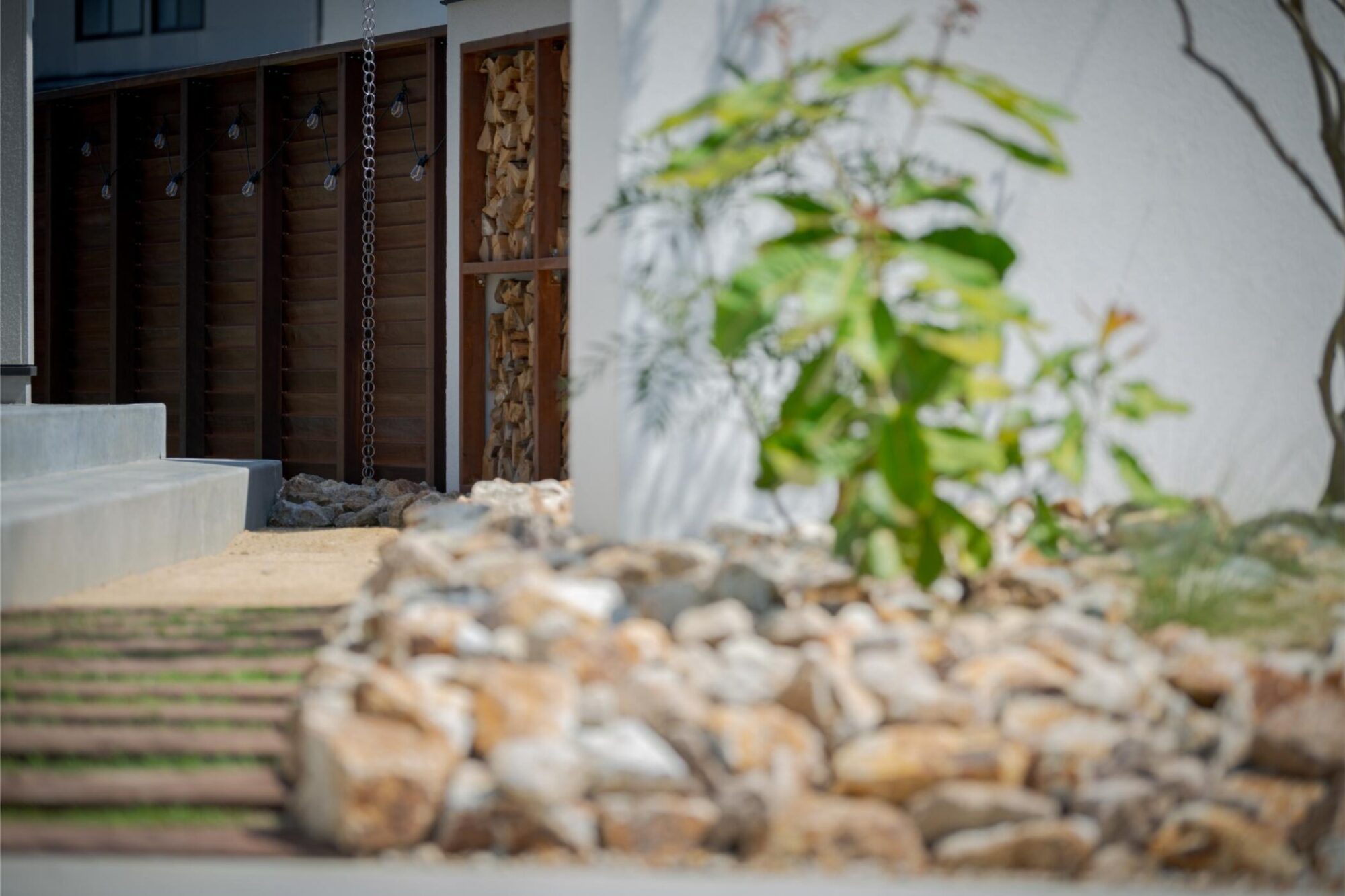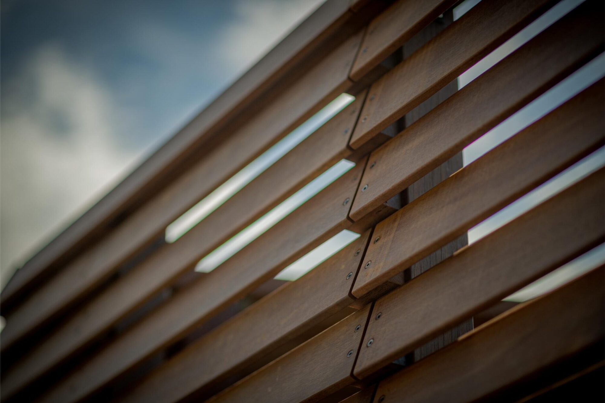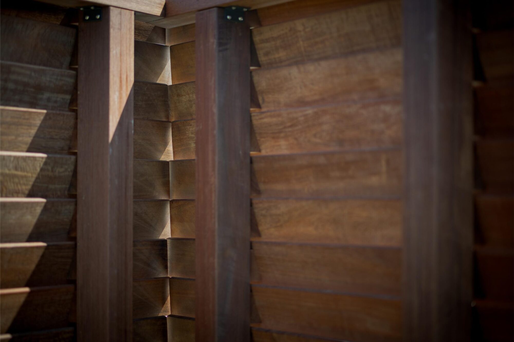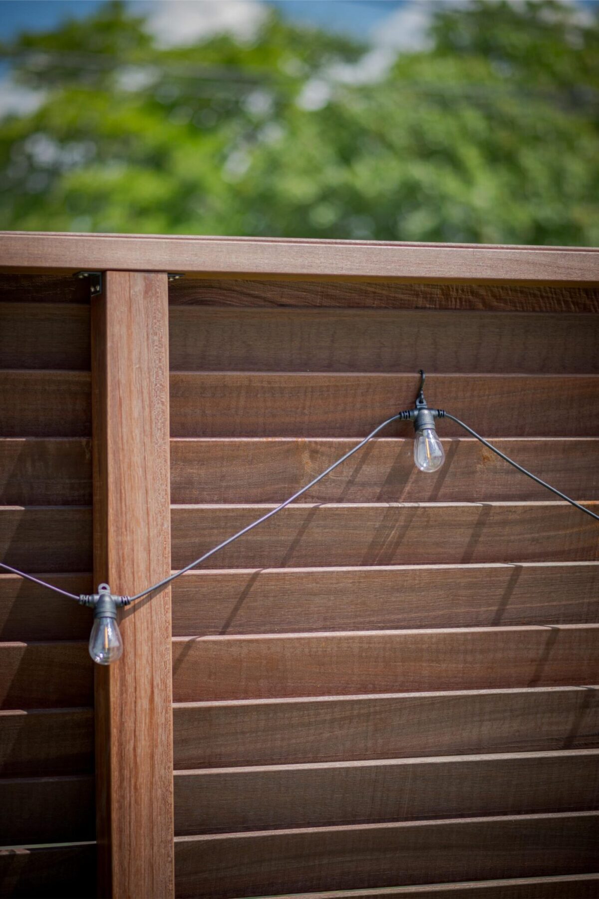 角度をつけて設置することで、完全目隠しとしながらも、風が通り抜ける『通気性』を確保。