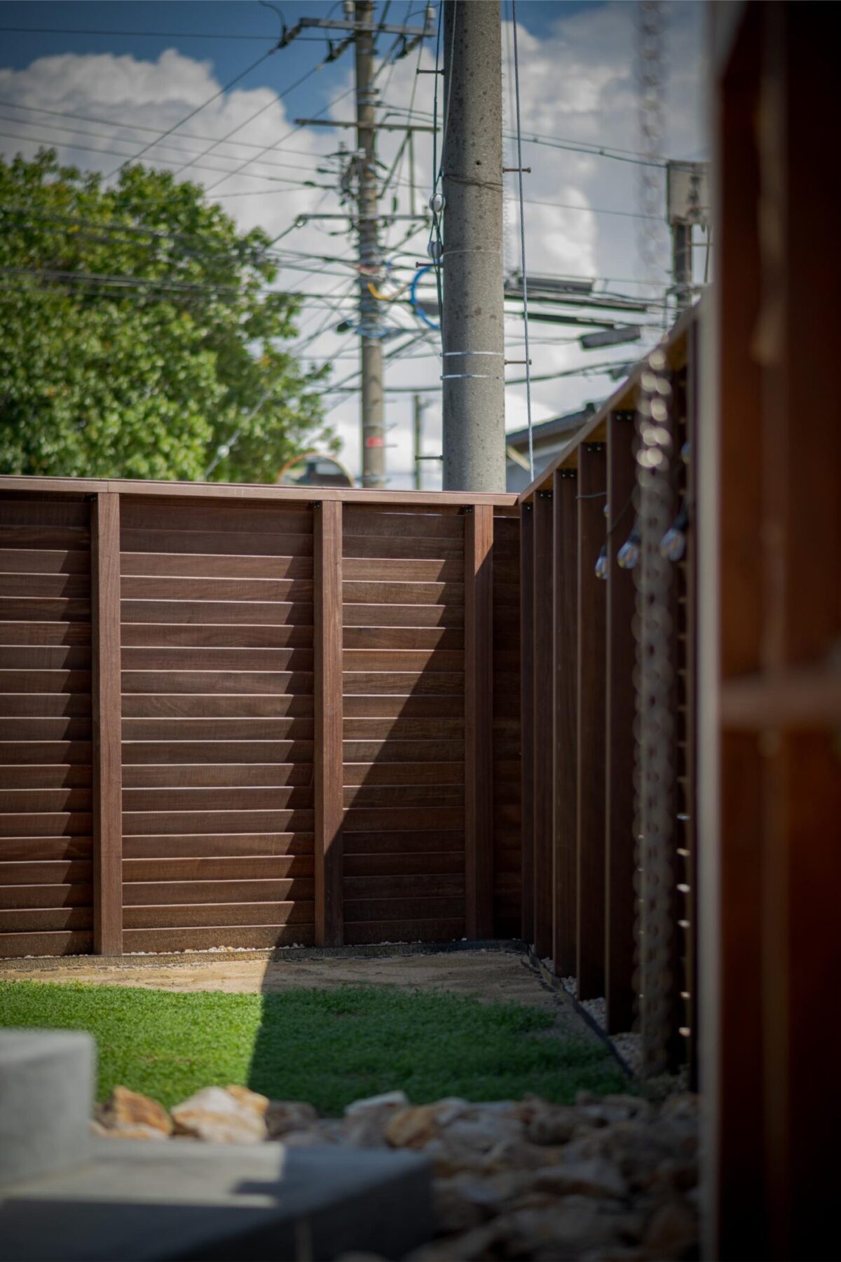 フェンスの板材だけでなく、柱まですべてウリンで作ったフェンスです。
